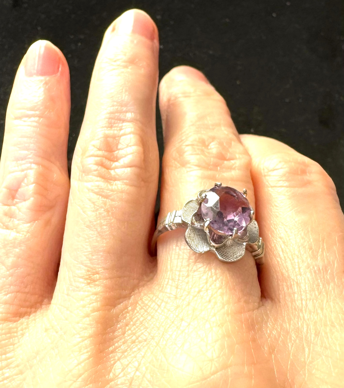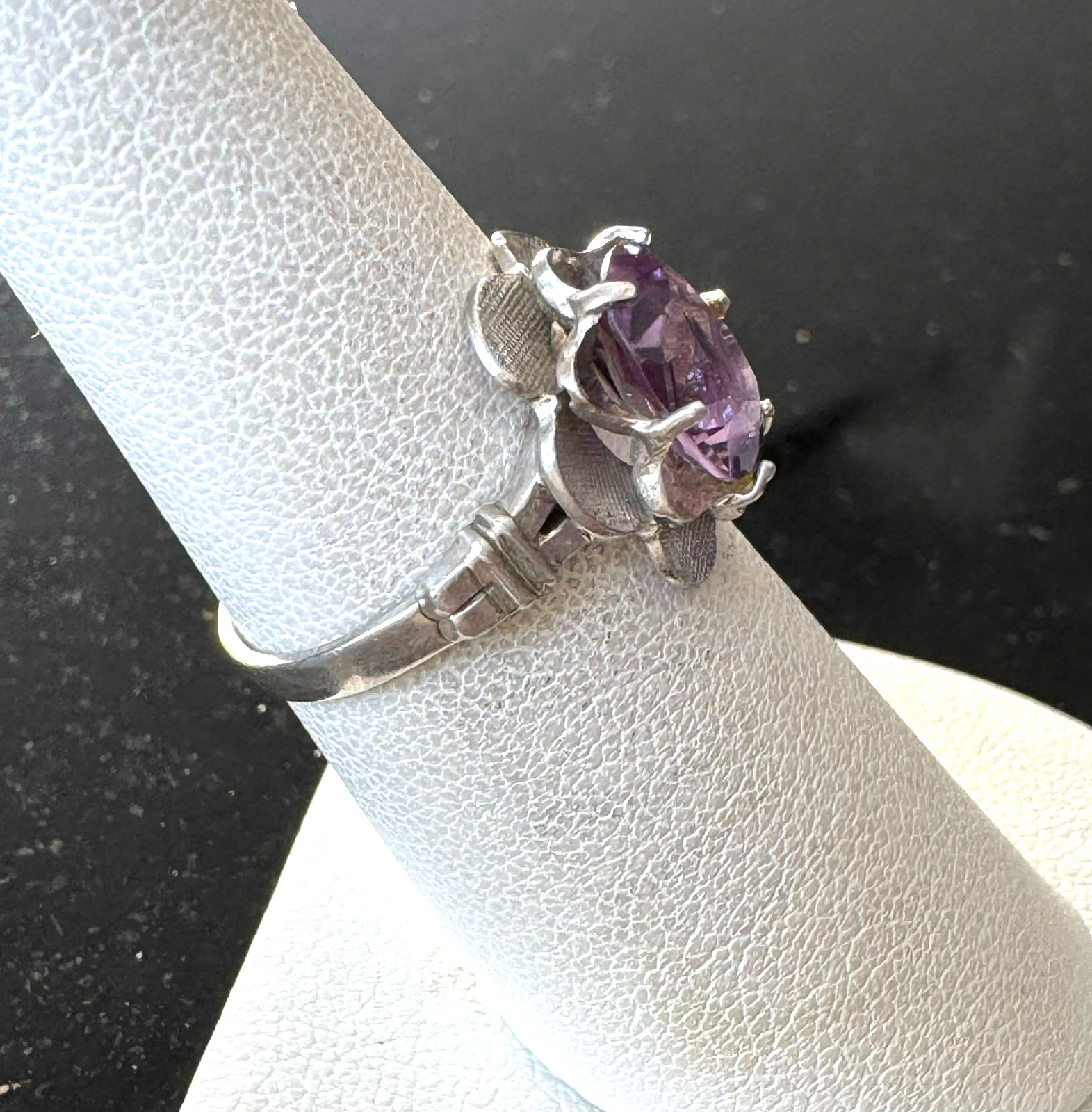 Vintage 925 Sterling Silver Amethyst Ring Statement Design Size 6.75