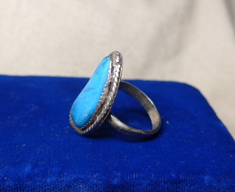 • vtg Native American Sterling Silver and Turquoise Vintage Ring Sz 8