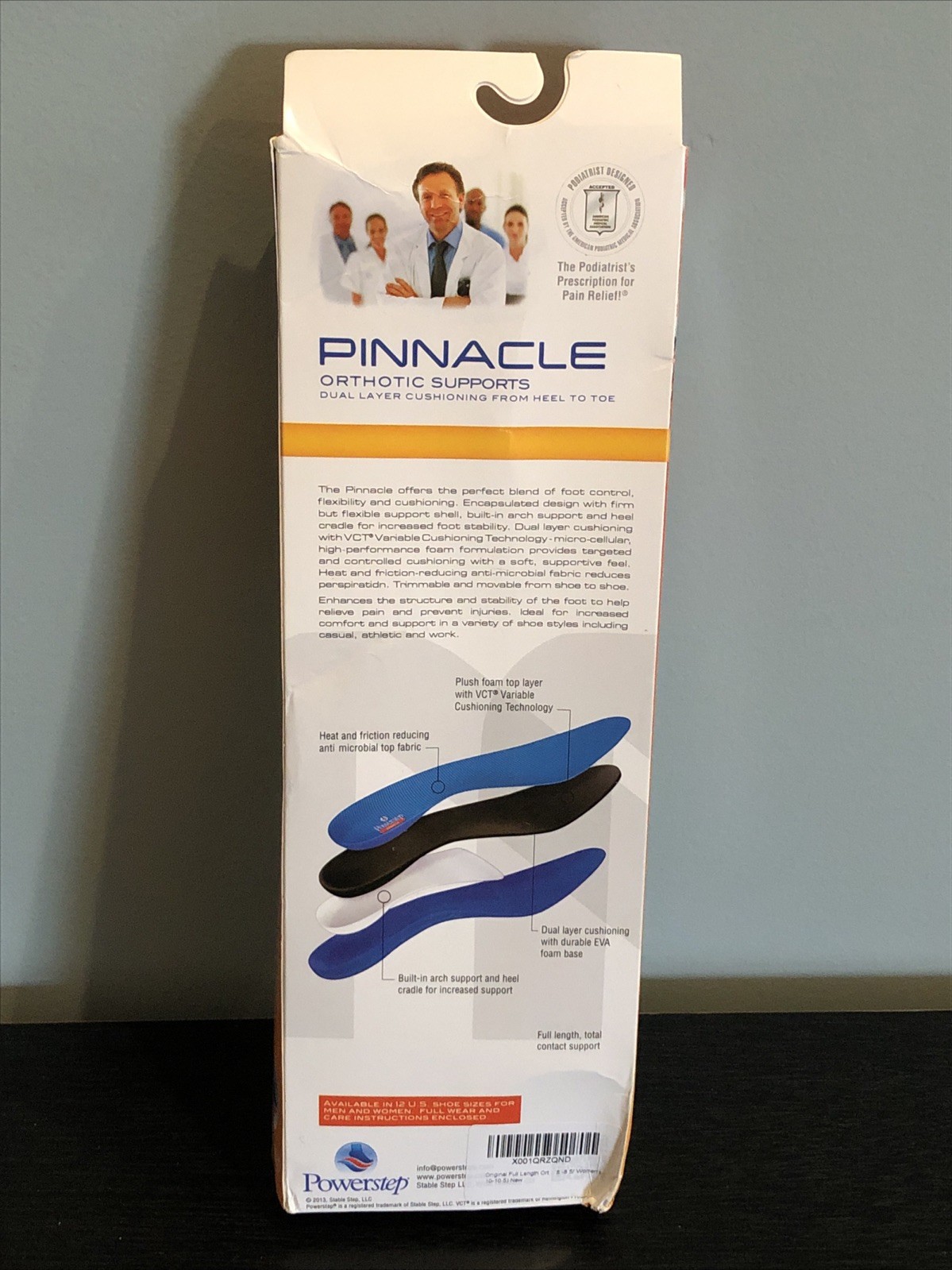 Powerstep PINNACLE Orthotic Full Length Insoles Size E Mens 8-8.5 Womens 10-10.5