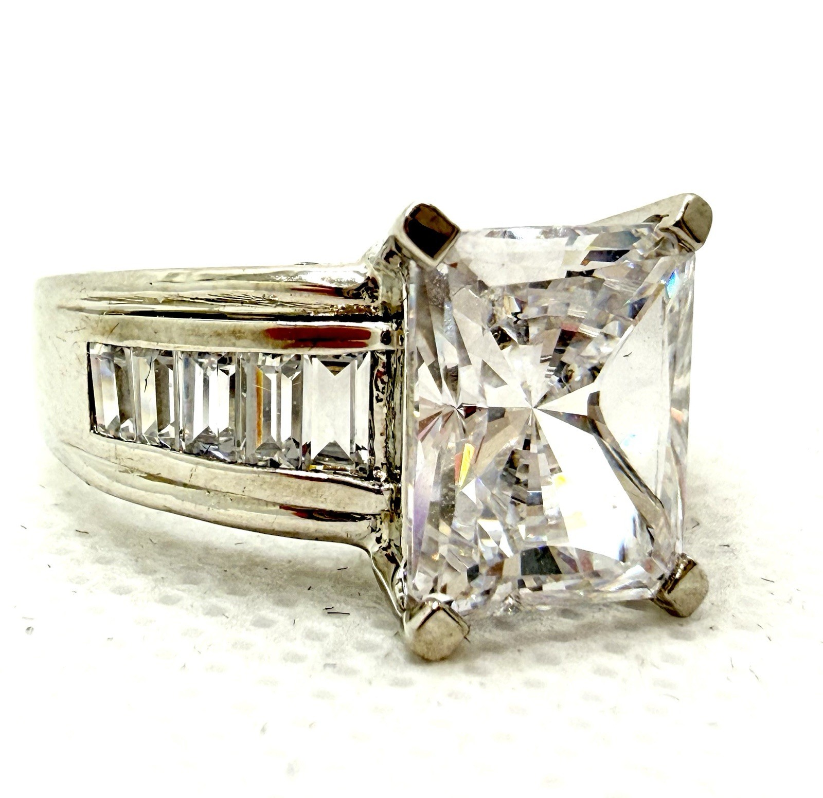 925 STERLING SILVER CUBIC ZIRCONIA ENGAGEMENT RING Sz 8 Baguette