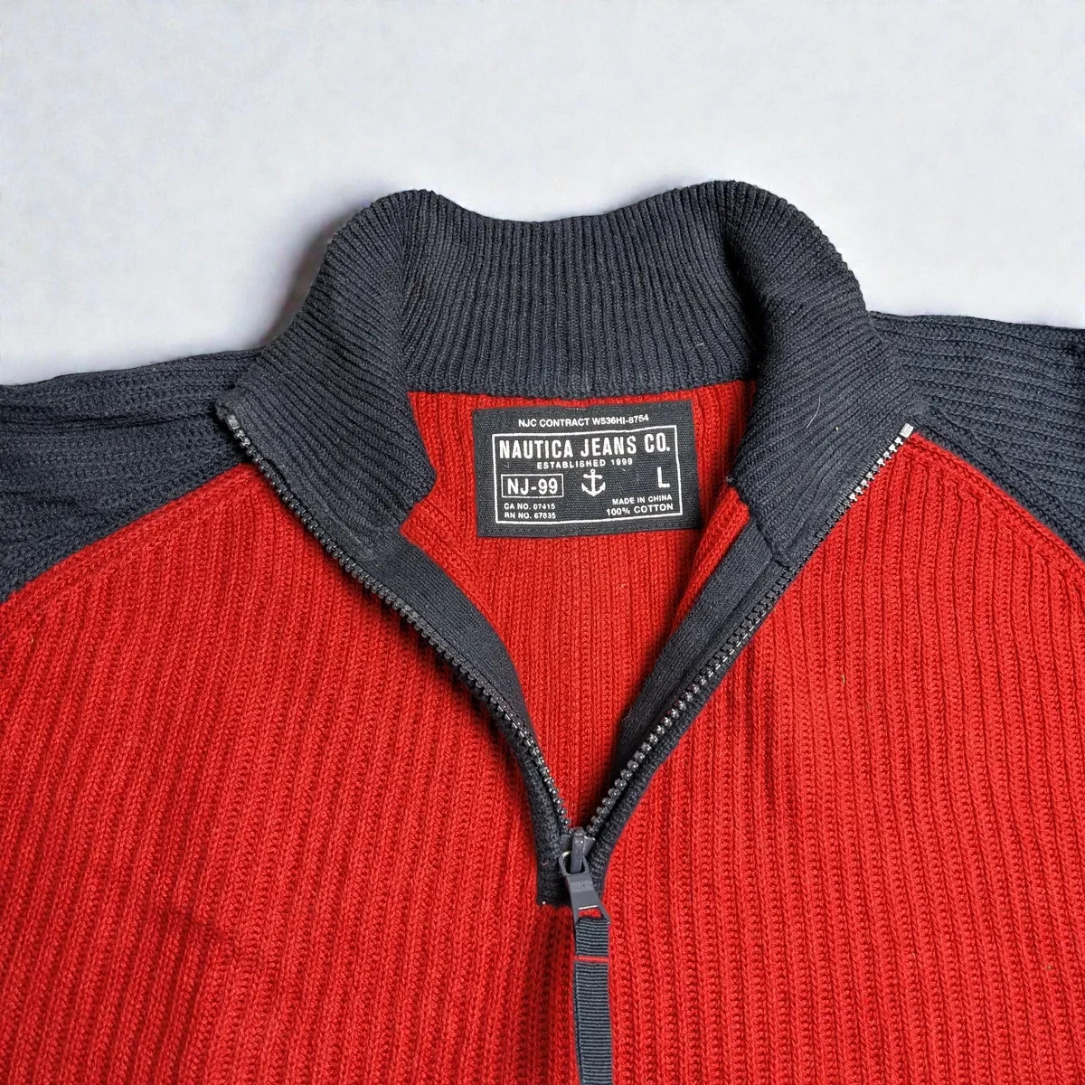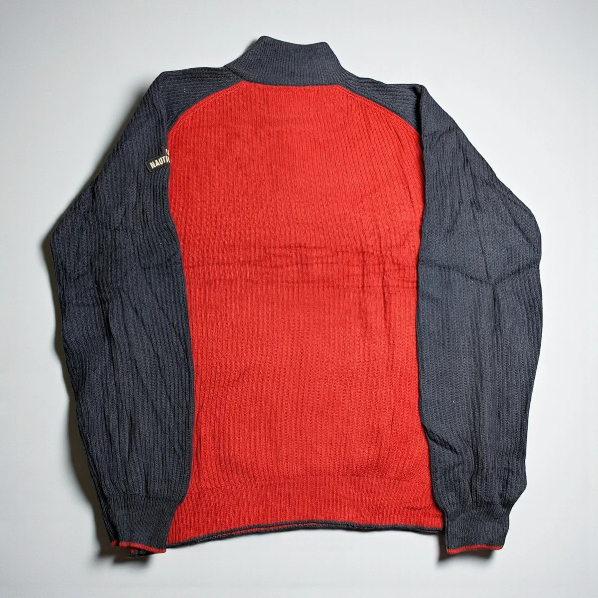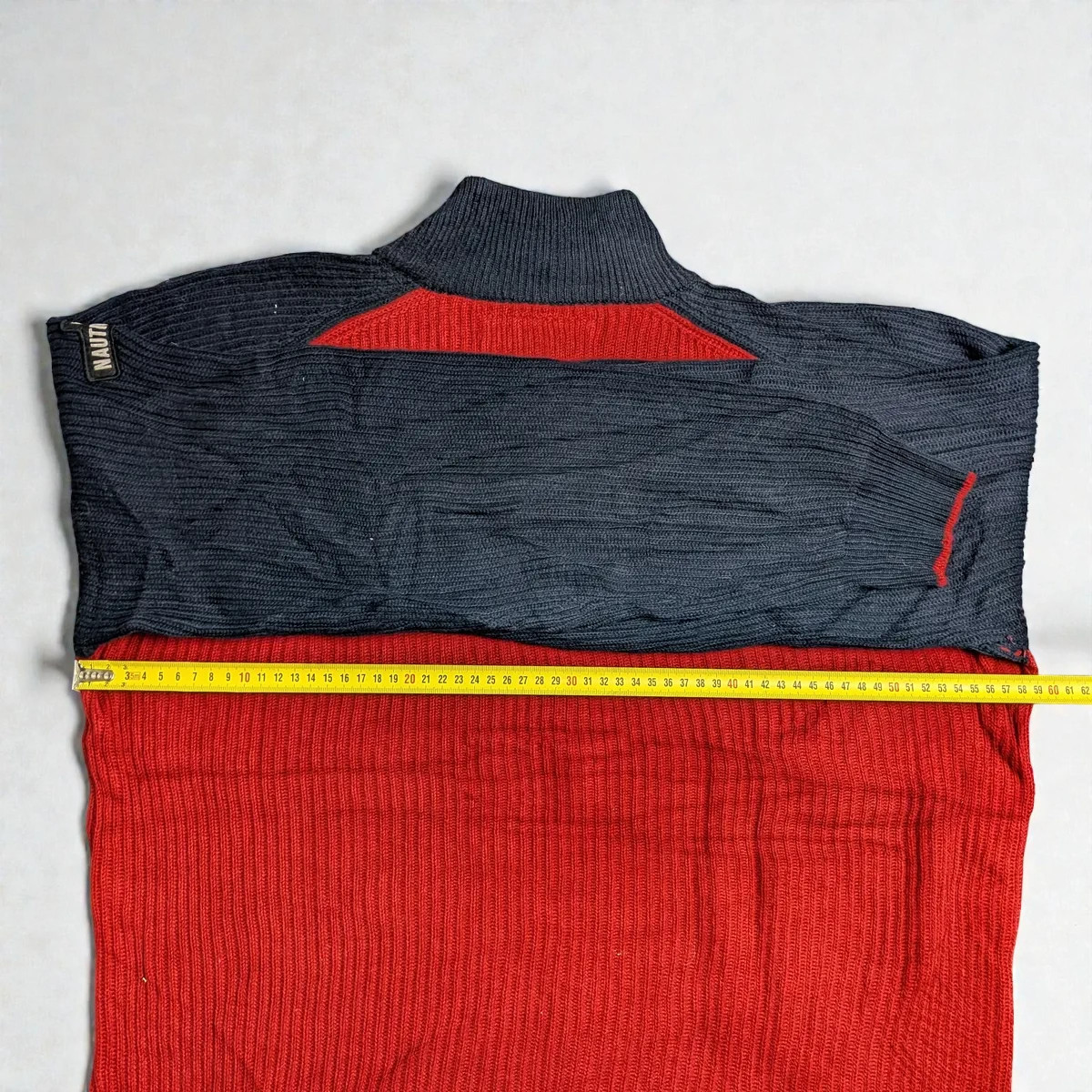 Vintage Nautica Half Zip Ribbed Sweater Red Navy Sport Preppy Style Size M/L