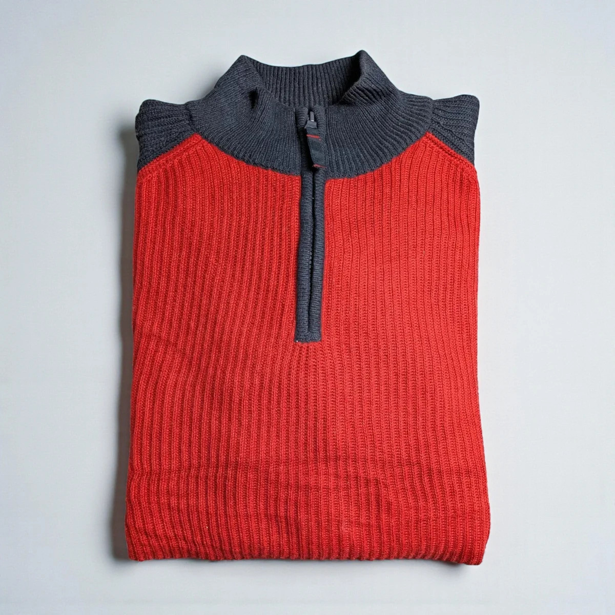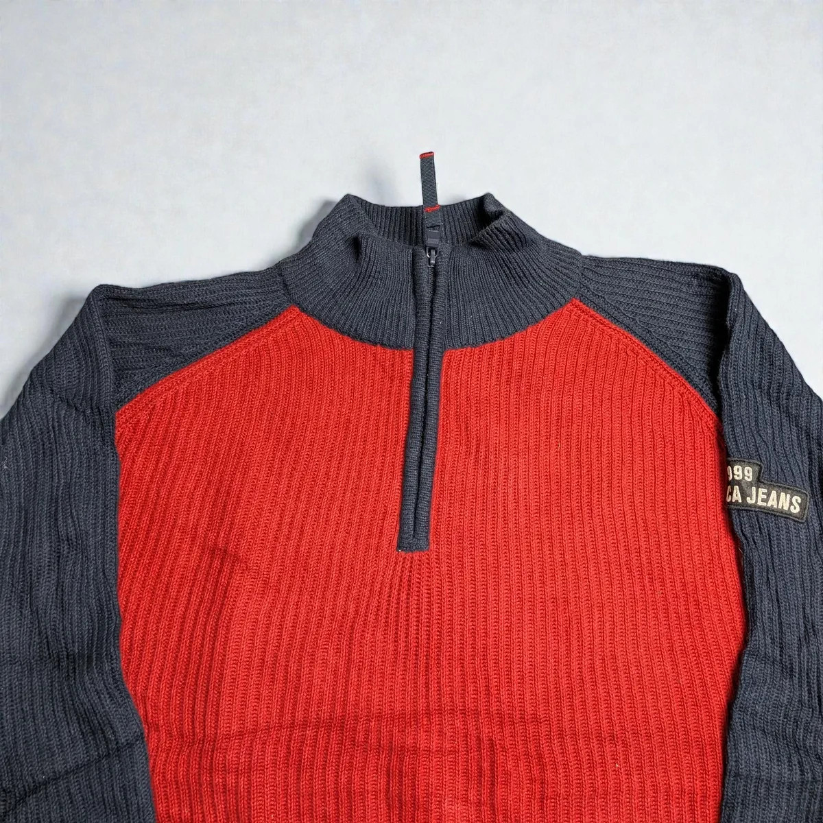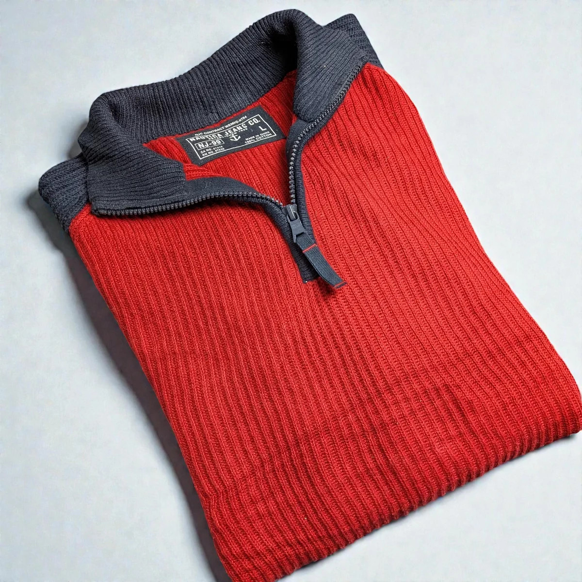 Vintage Nautica Half Zip Ribbed Sweater Red Navy Sport Preppy Style Size M/L