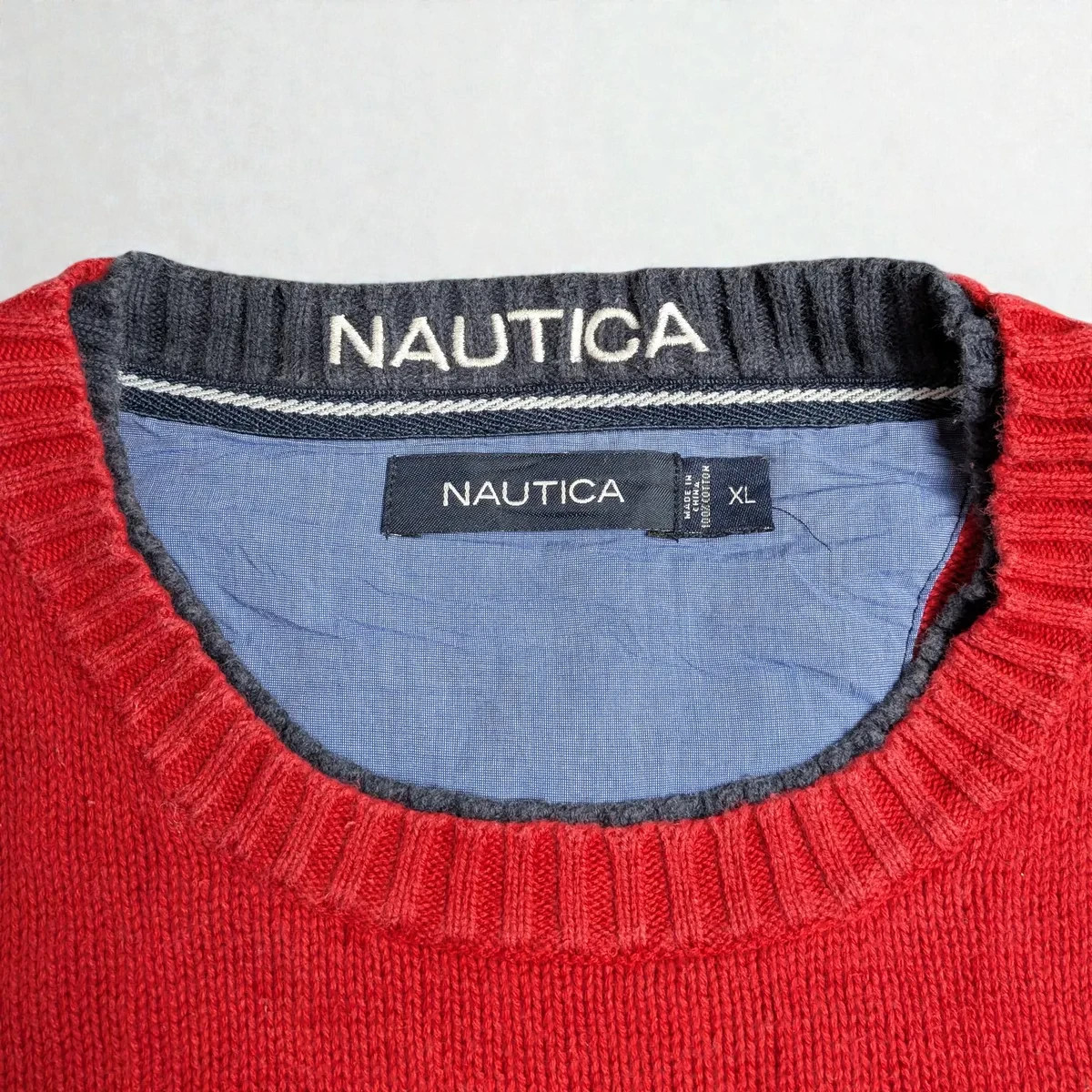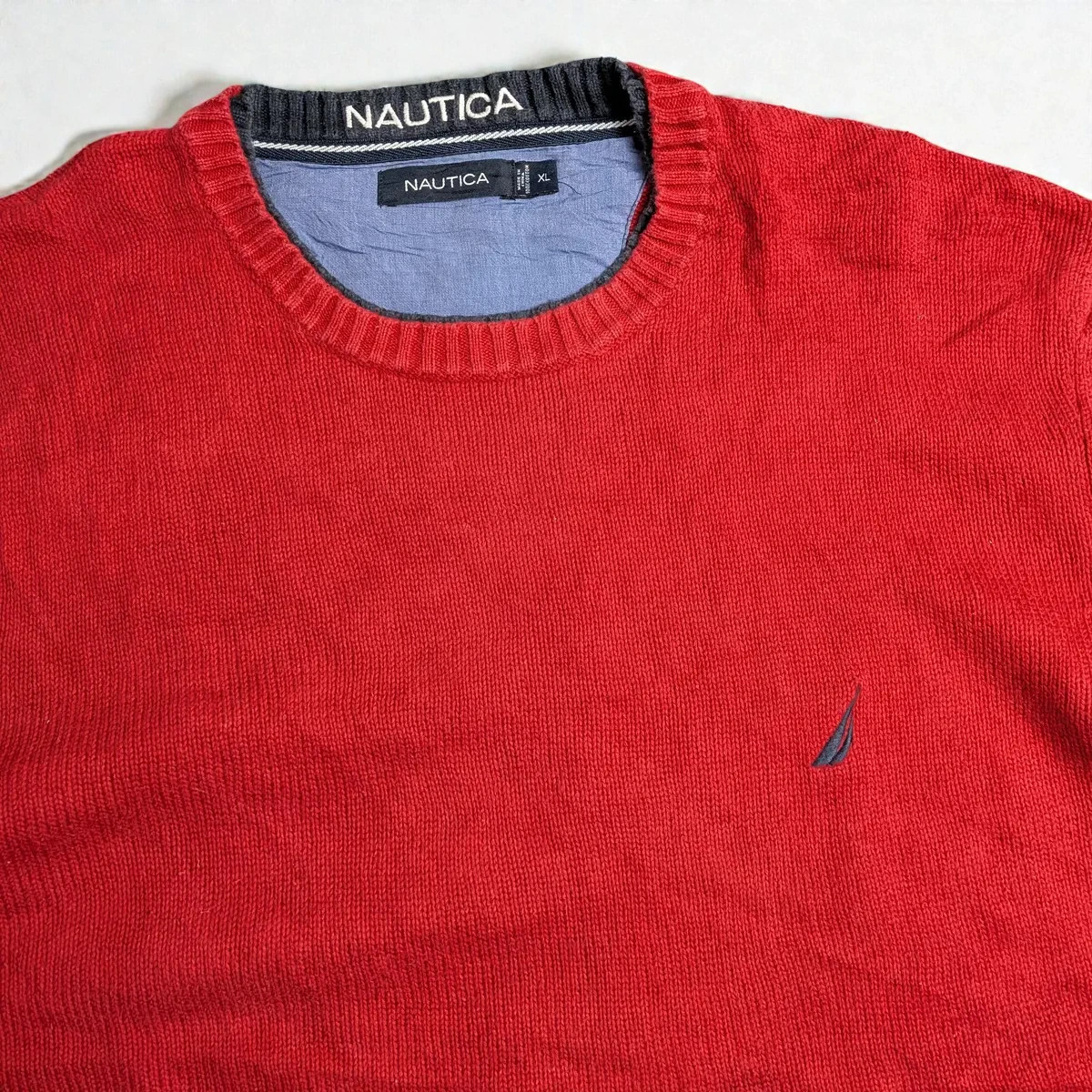 как выглядит Vintage Nautica Crewneck Sweater Red Minimal Preppy Old Money Style Size XL фото