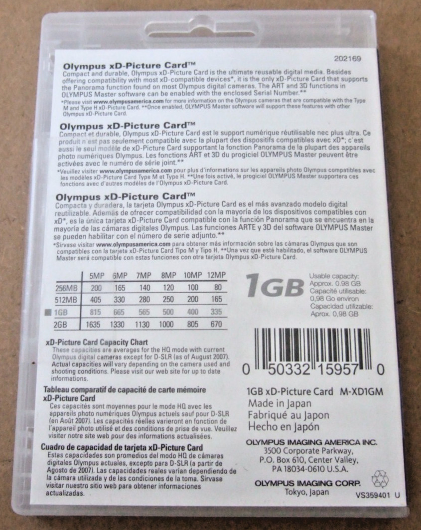 NEW OLYMPUS M-XD1GM 1GB PANORAMA TYPE M xD-PICTURE FLASH MEMORY CARD 202169