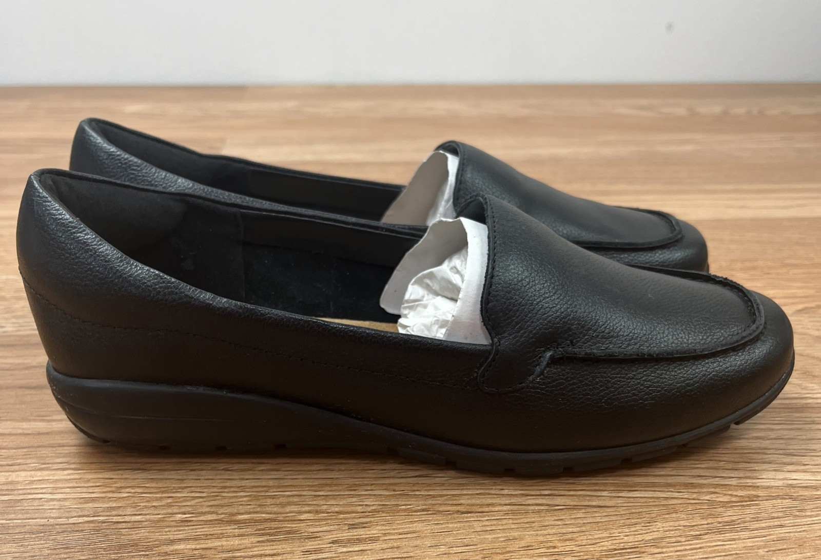 как выглядит Easy Spirit Abide Leather Casual Flats Womens Size 6.5 WIDE Black NEW фото