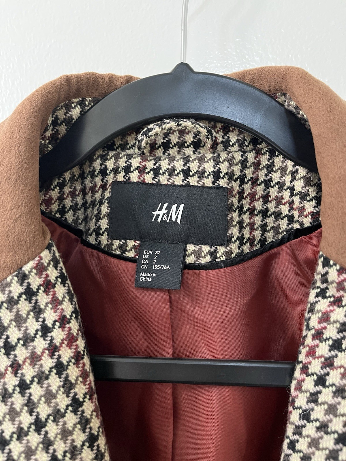 как выглядит Women s Sports Coat Blazer H M Size 2 Houndstooth Brown Black Red фото