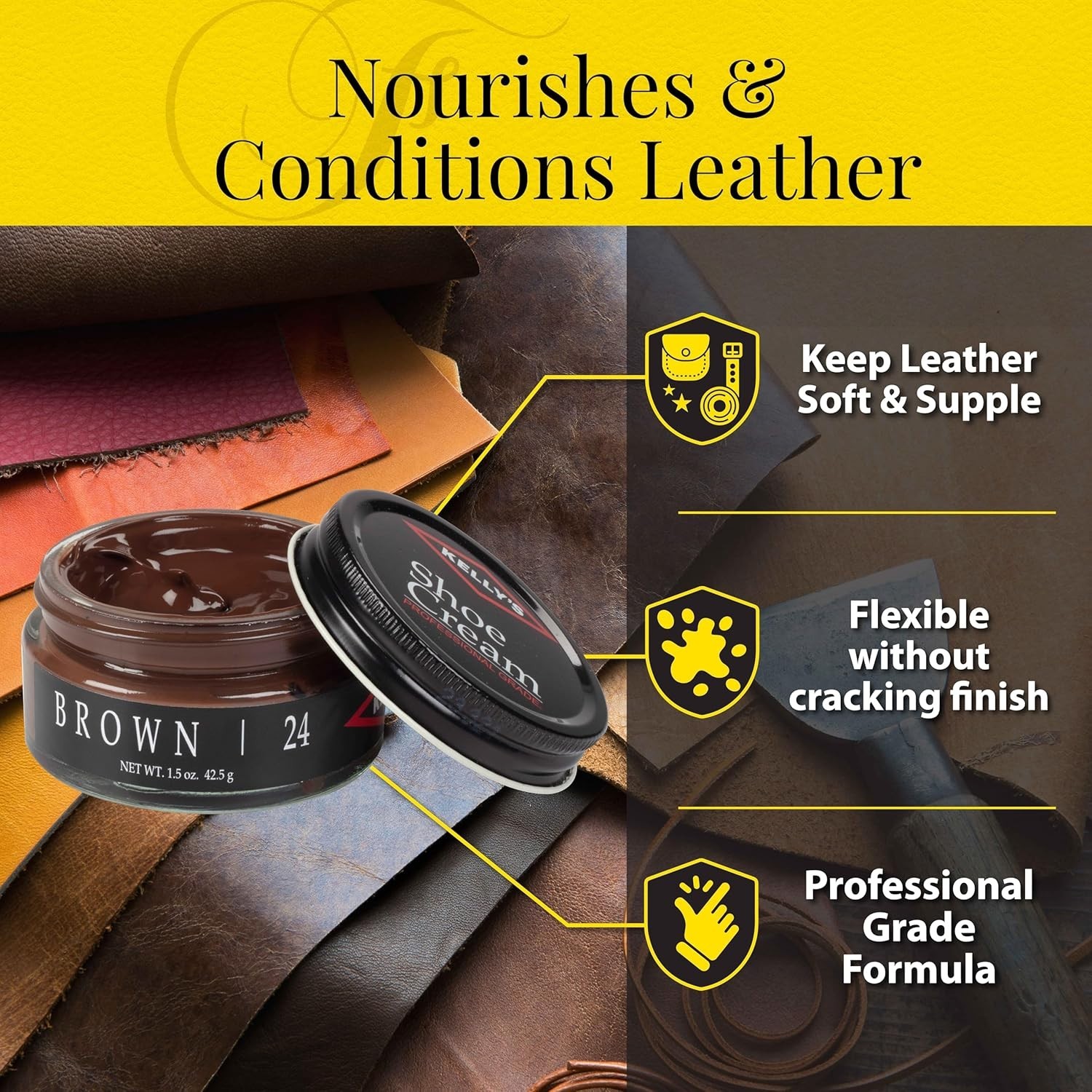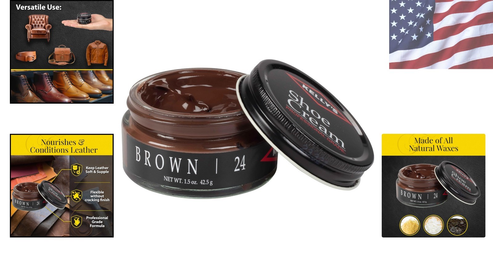 Brown Shoe Polish 1.5 oz - Natural Wax Leather Cream for Nourishing Shine