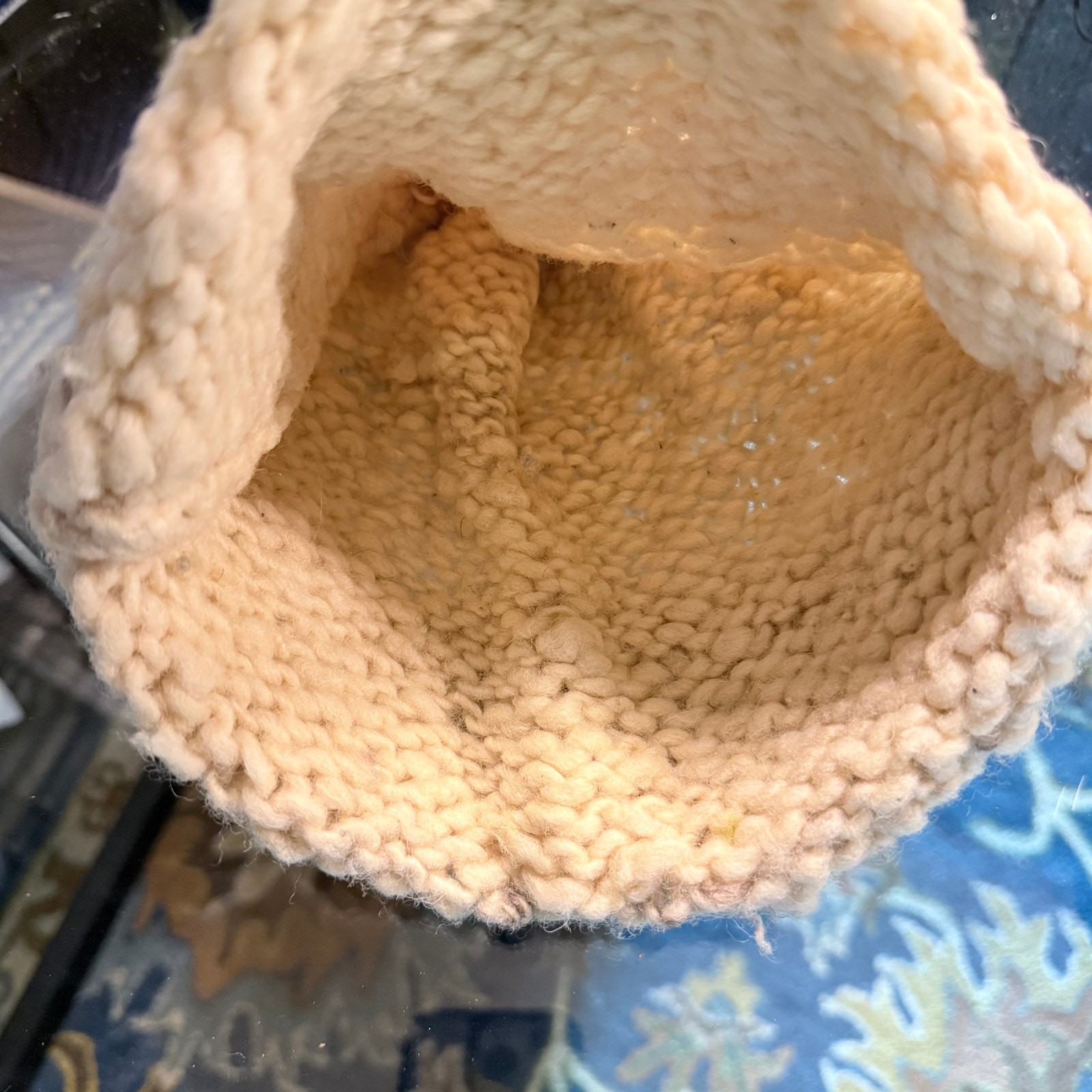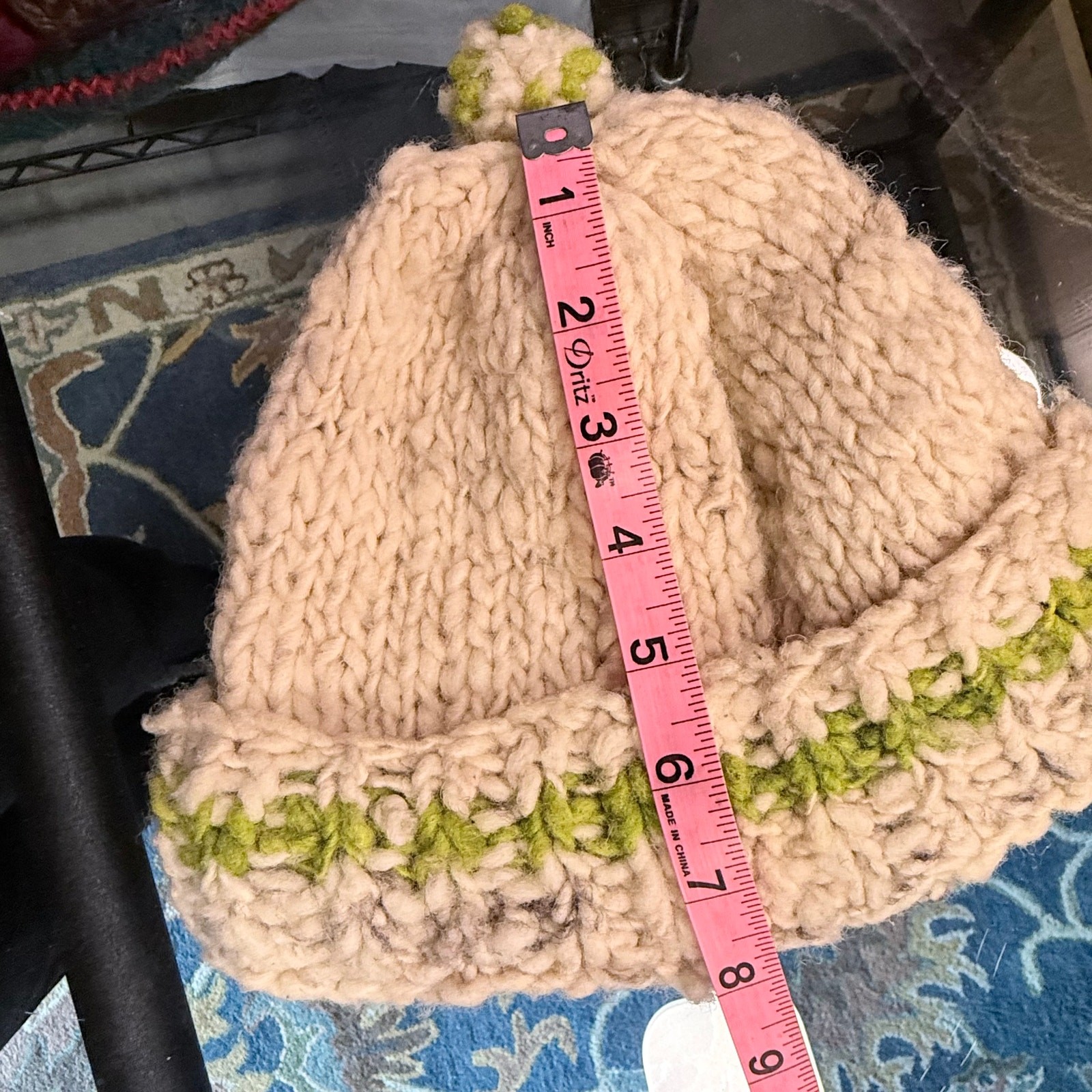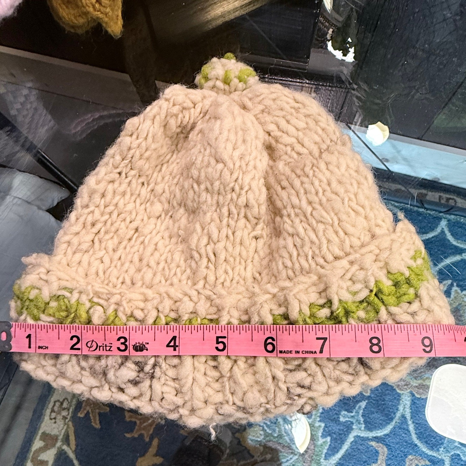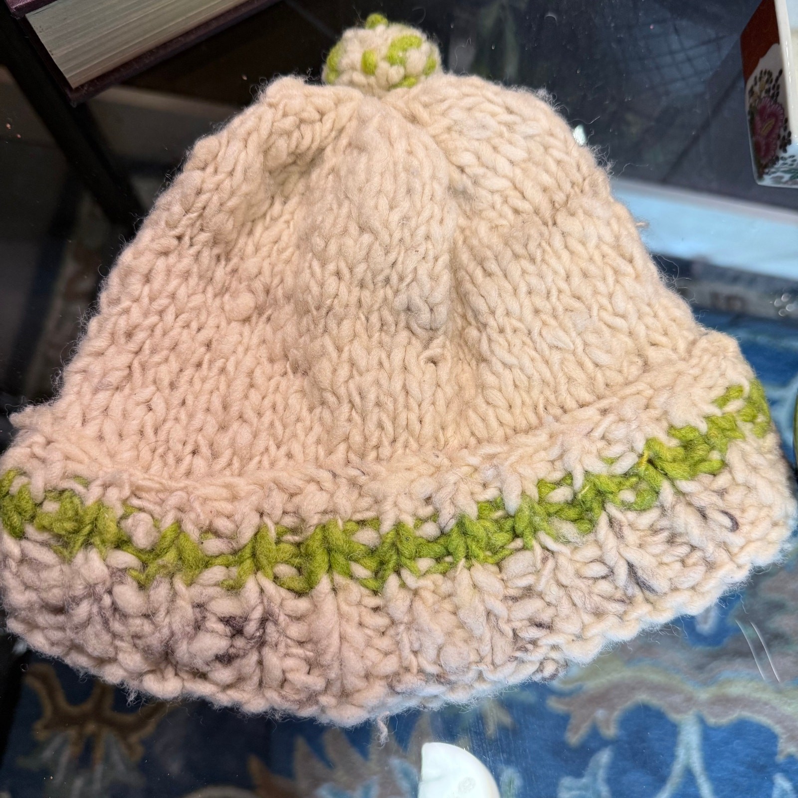 как выглядит Hand-Knit Chunky Wool Beanie  Cream Sage Green Pom Pom Winter Hat фото