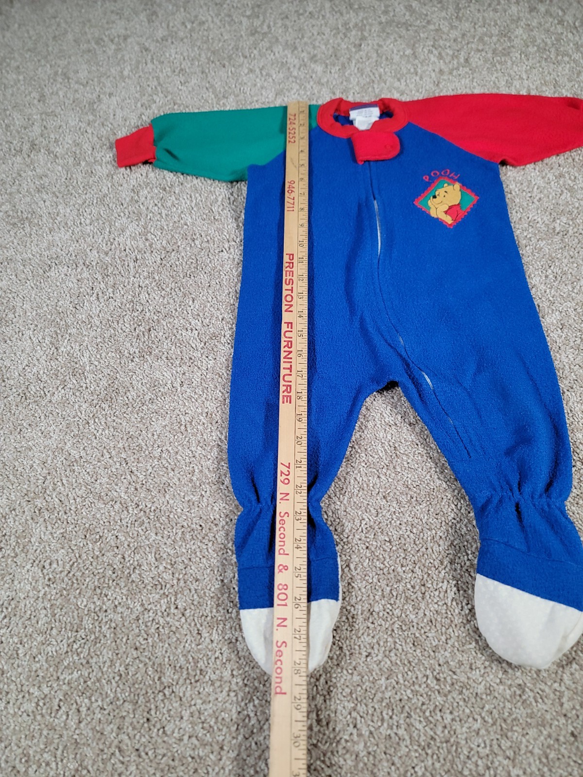 Vintage Winnie The Pooh Sleeper Footed Pajama Full Zip 18 Months Blue 90s Disney
