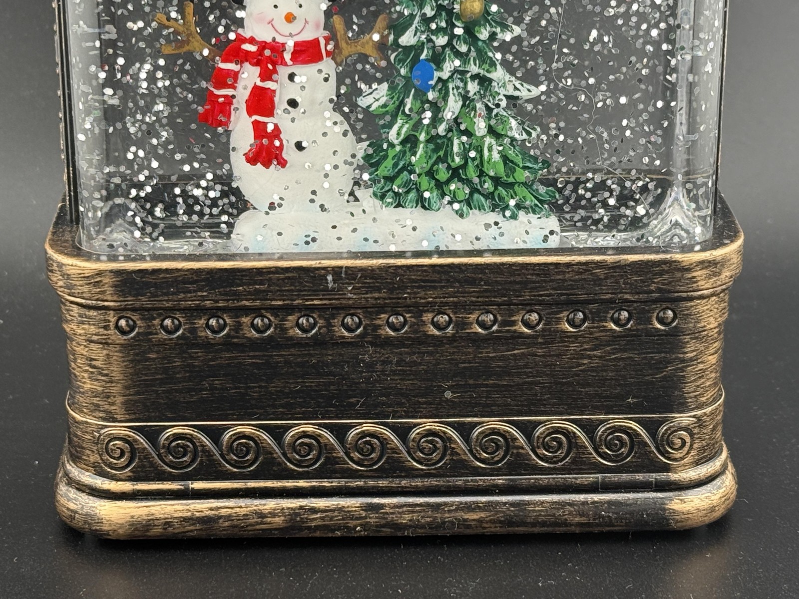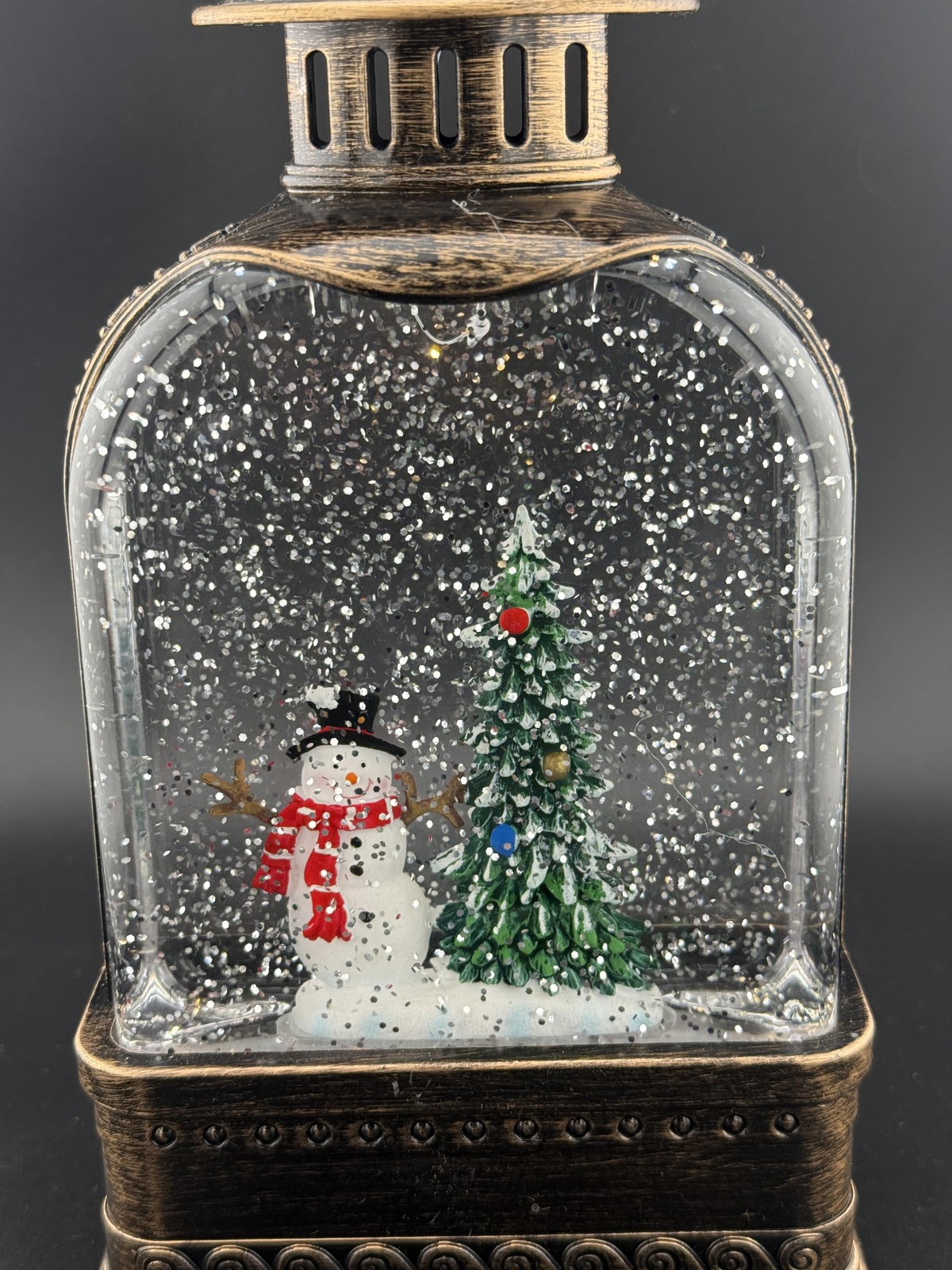 Snowman Christmas Tree Snow Globe Lantern Brown LED Lighted Musical Glitter
