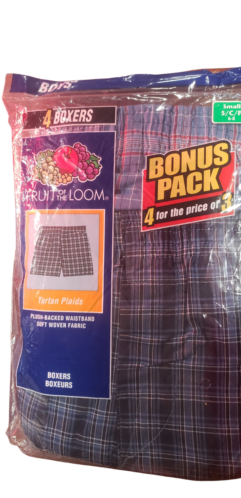 как выглядит Fruit of the Loom Boys Boxers Size Small 6-8 Tartan Plaid 4-Pack Vintage 2006 фото