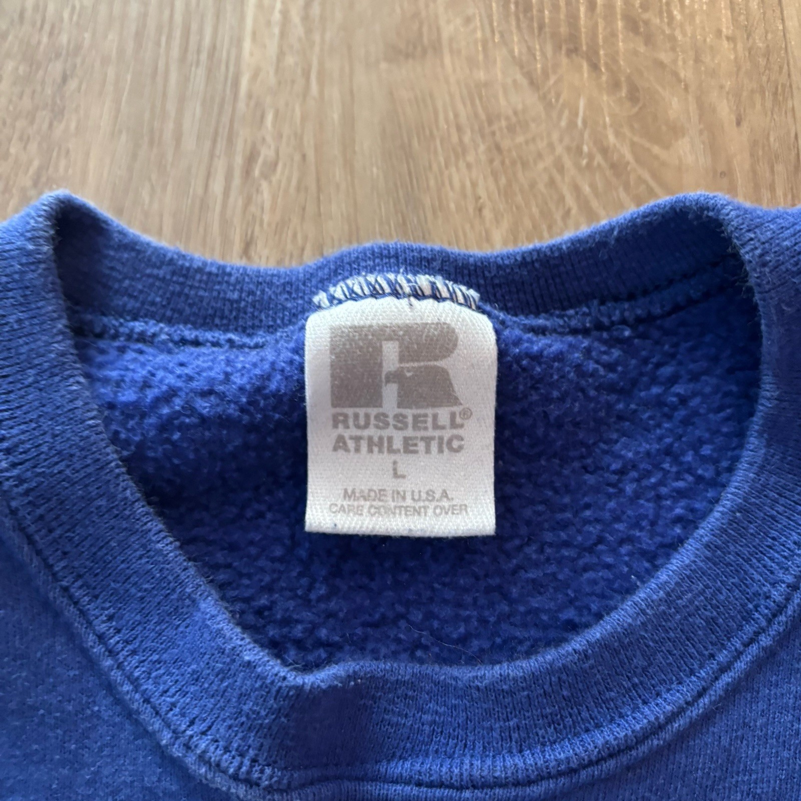 как выглядит Vintage 90s Russel Athletic Blue Blank Crewneck Made In USA Size Large фото