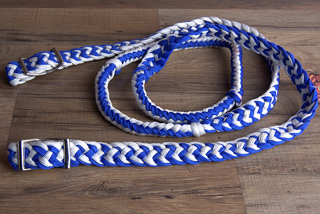 как выглядит BH Hilason Braided Poly Barrel Racing Contest Reins Flat 1" X 8Ft Purple фото