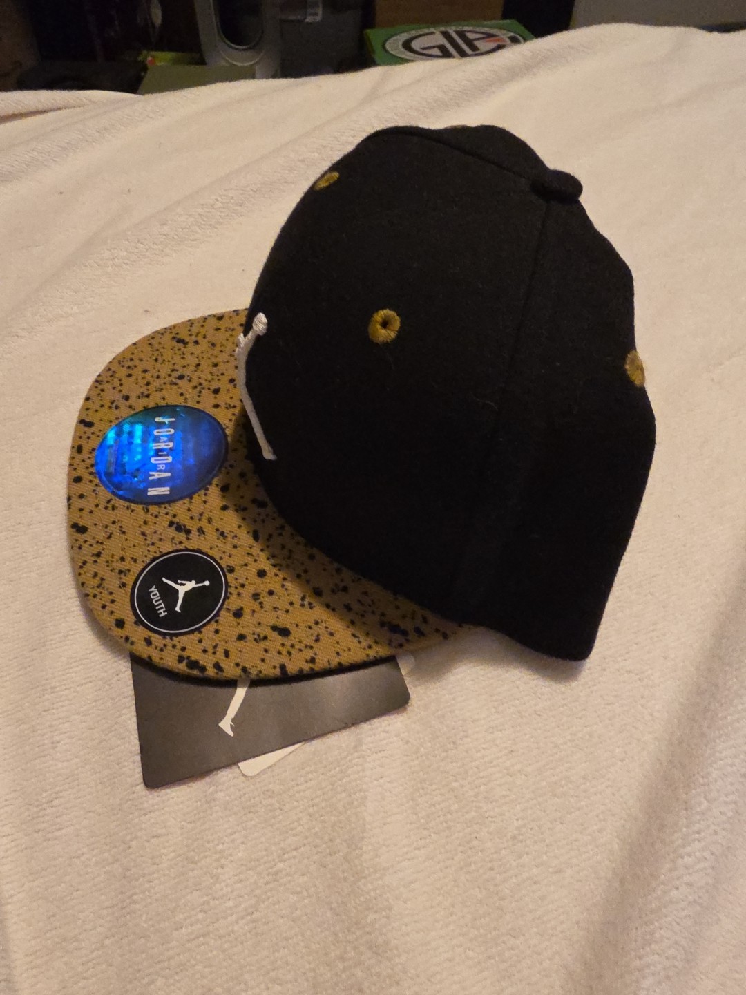 Air Jordan Hat Youth Black Embroidered Logo Jumpman Snap Back Cap Black/Gold
