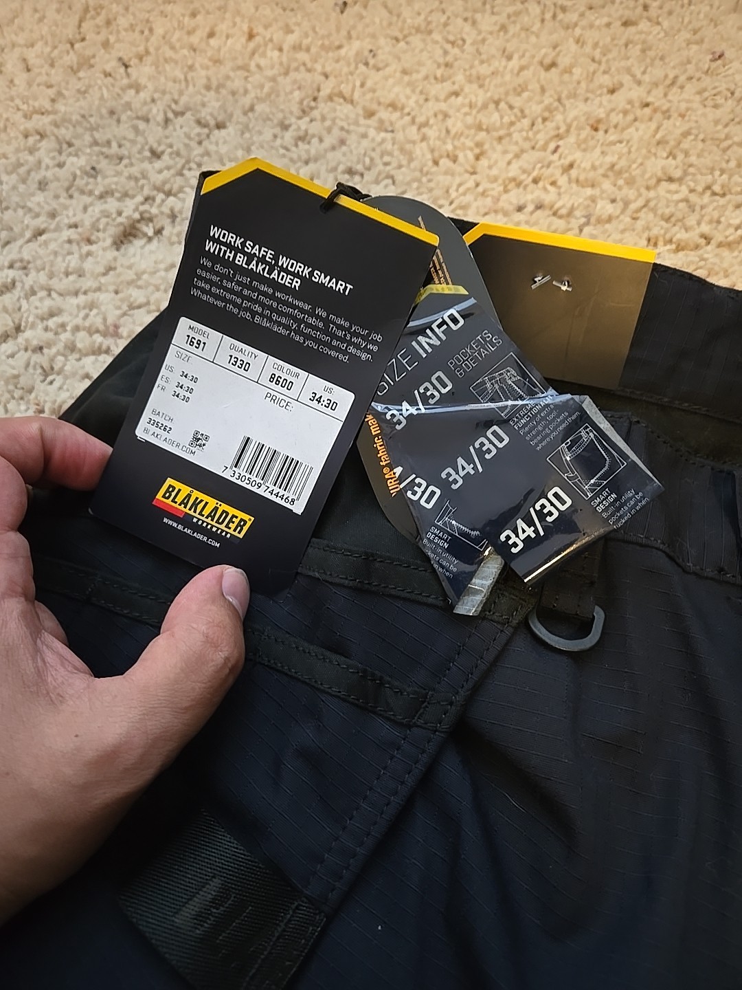 NWT Mens Dark Blue/Navy Bl kl der Workwear Construction Pants Mens Size 34/30