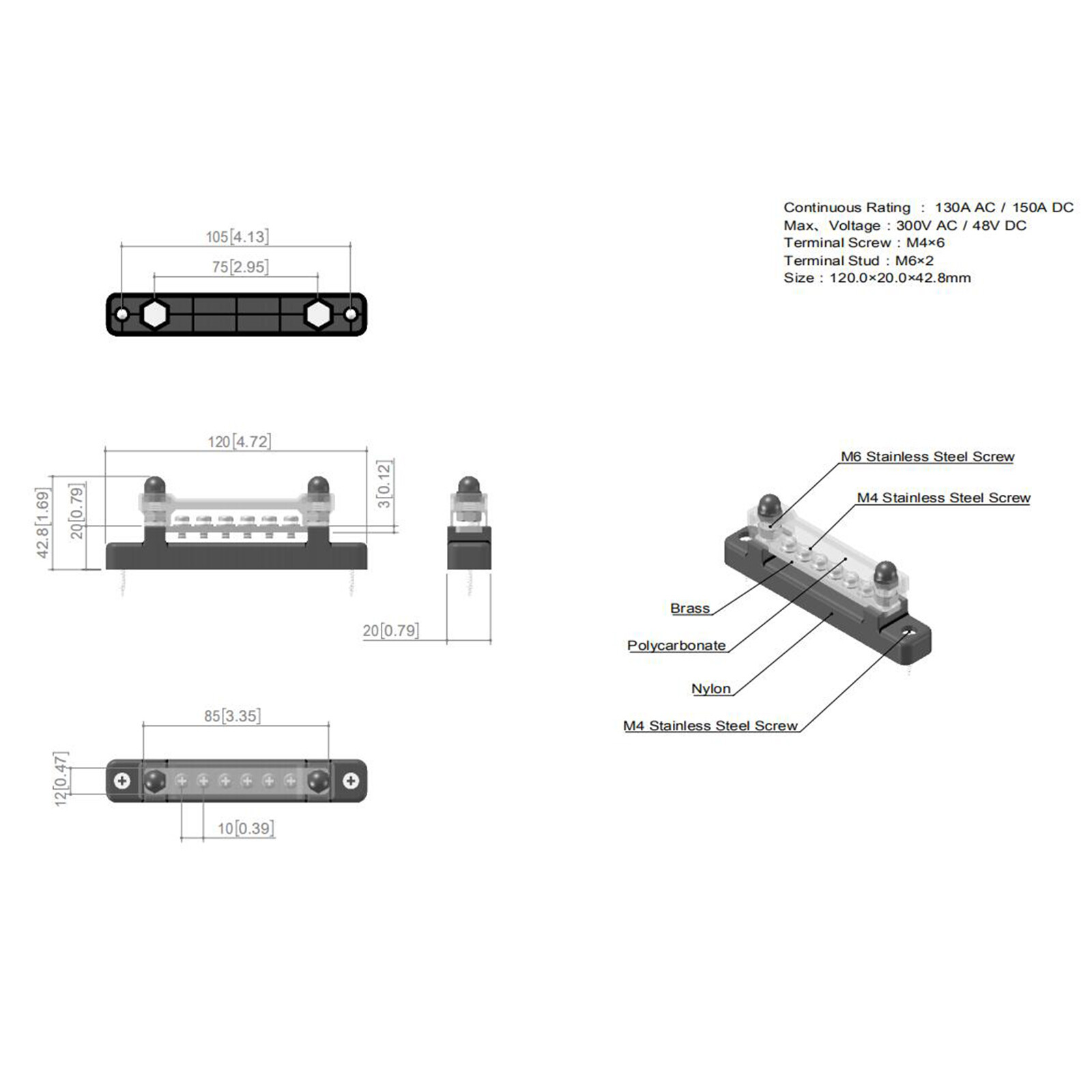 Terminal stud: M6*2 (M6 stainless steel screw)