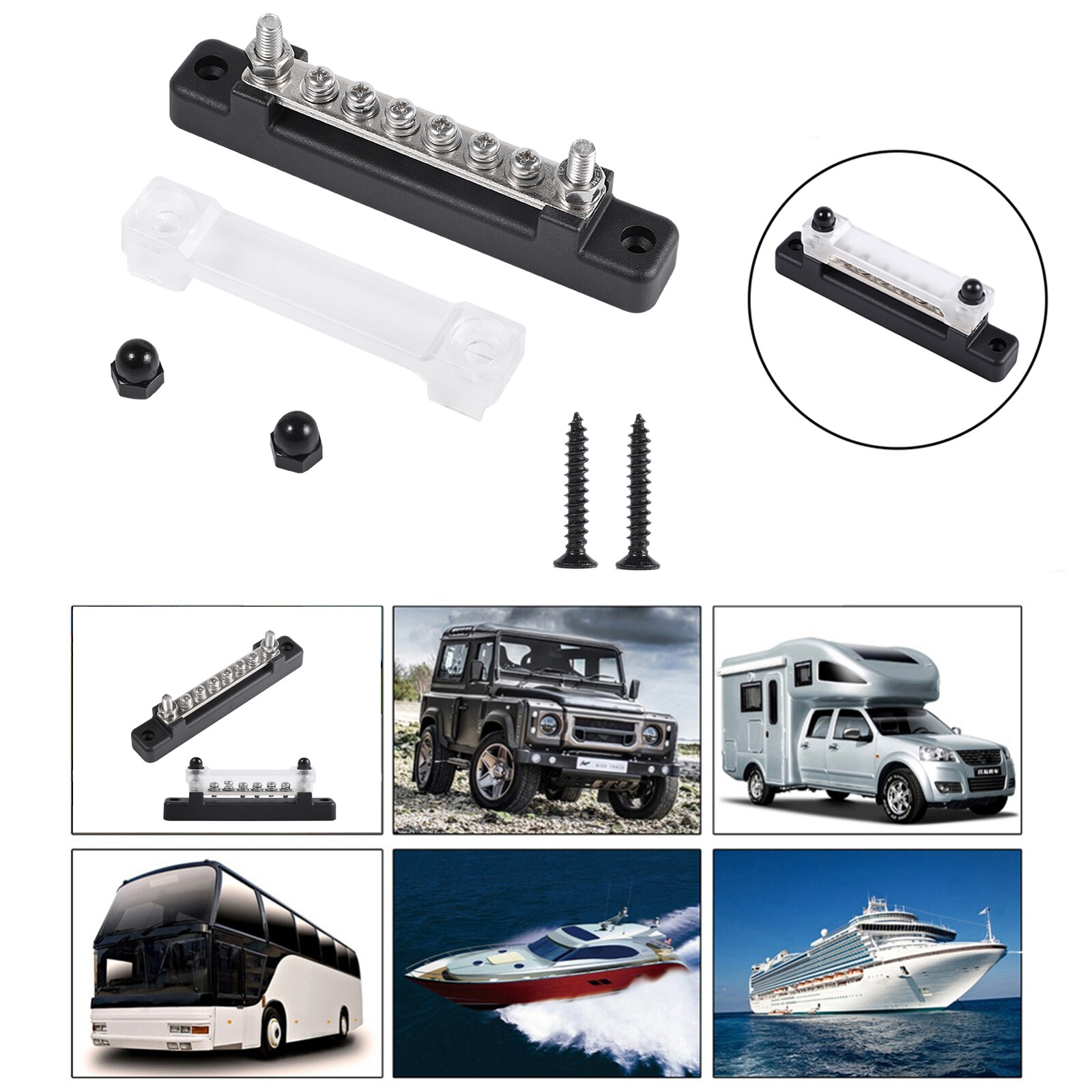 6 Way Blade Fuse Box Block Auto Marine Boat Holder Cover 12V Bus Bar Kit BLK UE