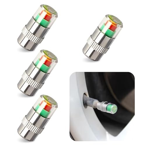 Car Tire Pressure Monitor Valve Stem Caps, 2.4Bar 36PSI Tire 4 PCS Silver