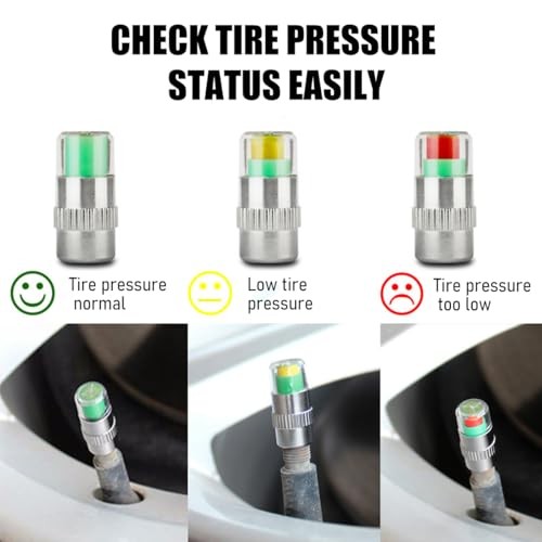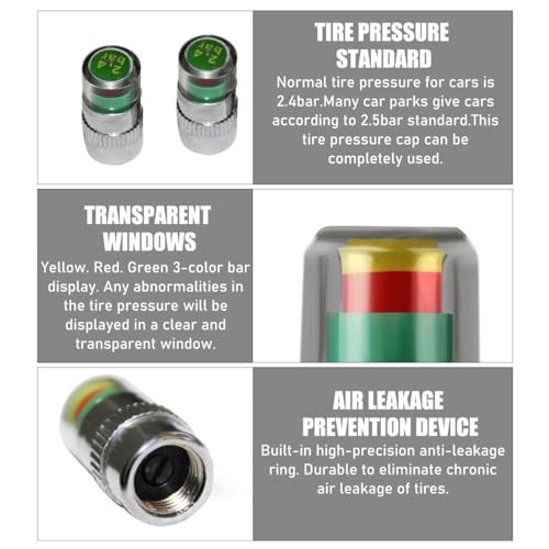 Tire Pressure Monitor Valve Stem Caps, 2.4Bar 36PSI Car Tire 4 PCS Silver
