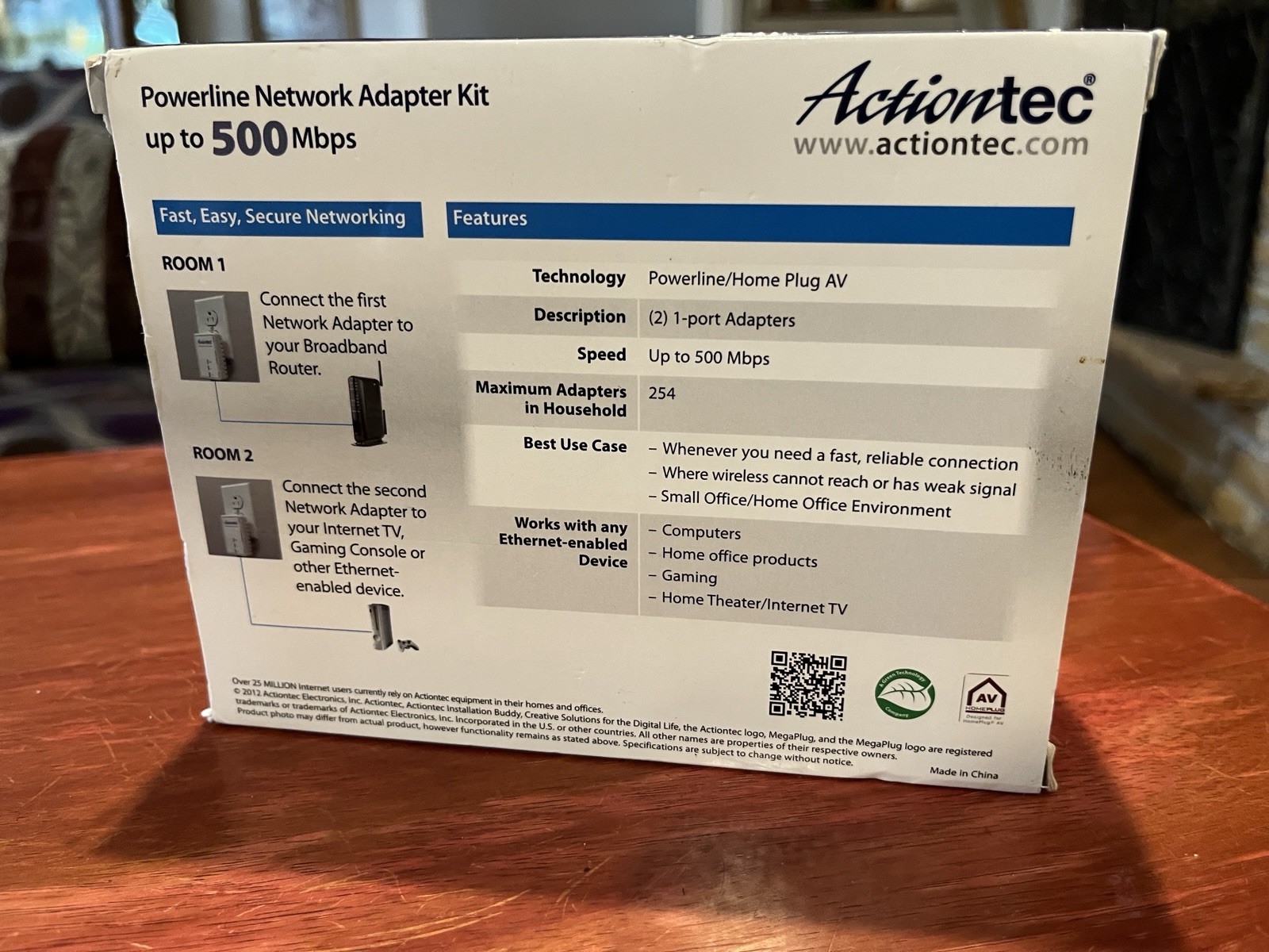 Actiontec PWR500 Powerline Ethernet Adapter 500Mbps 2-Pack Brand New.