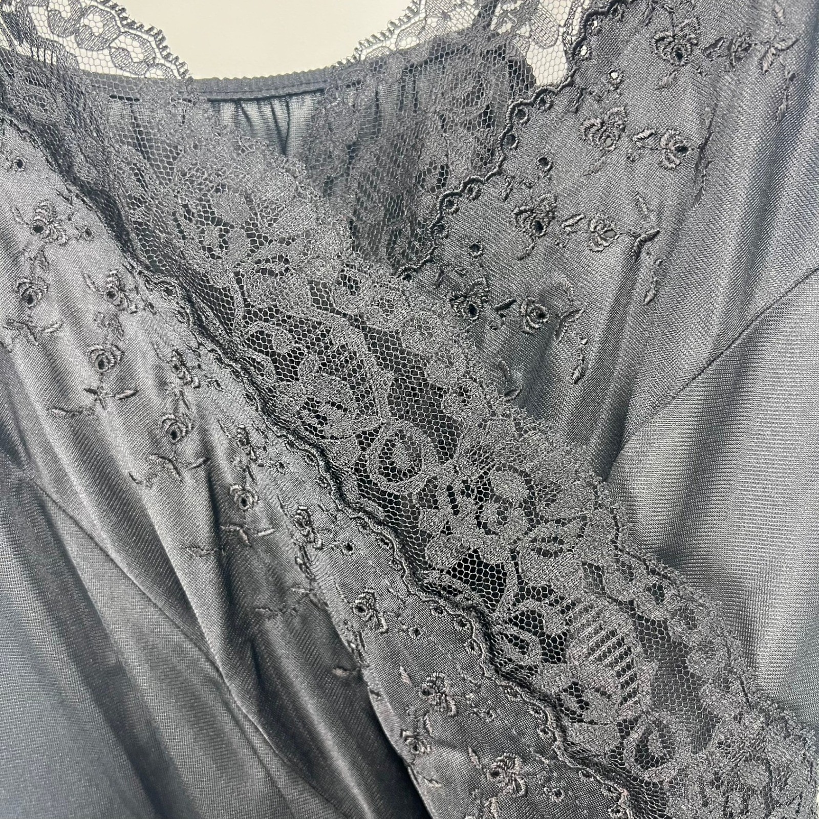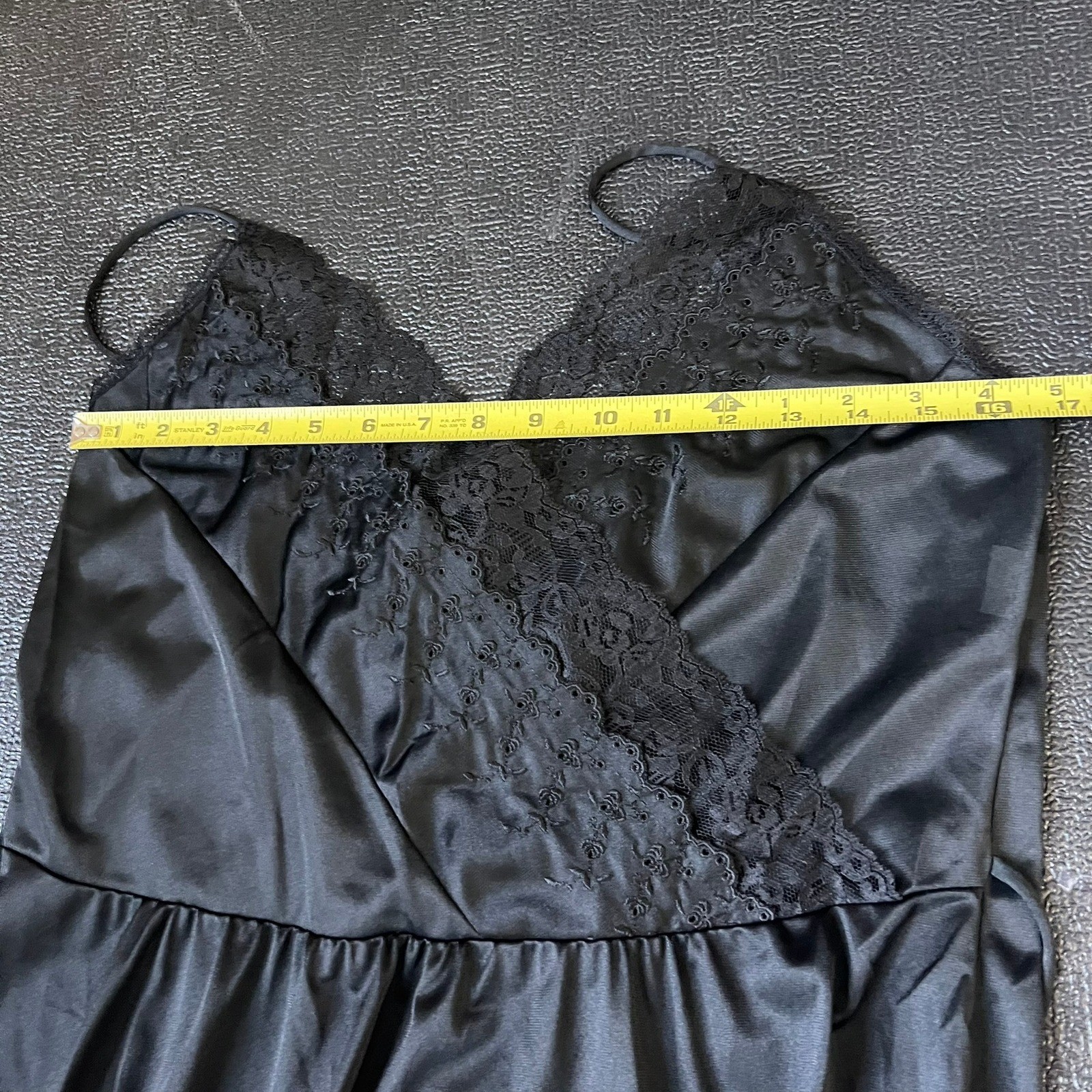 как выглядит Vintage Black Lace Nylon Nightgown Maxi Slip Dress M Made in USA Whimsygoth фото