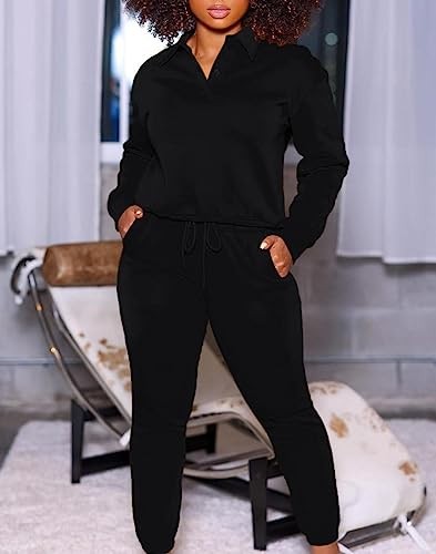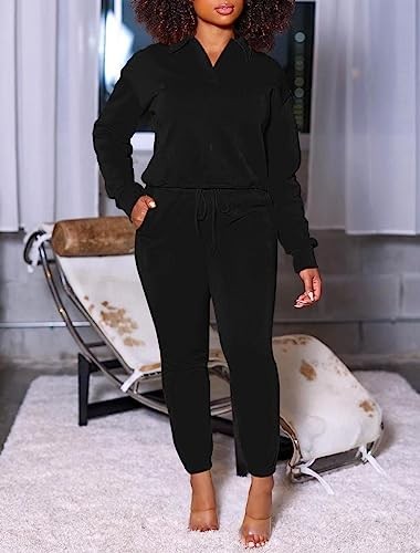 2 Piece Outfits For Women Sweatsuits Jogging Set X-Large Black