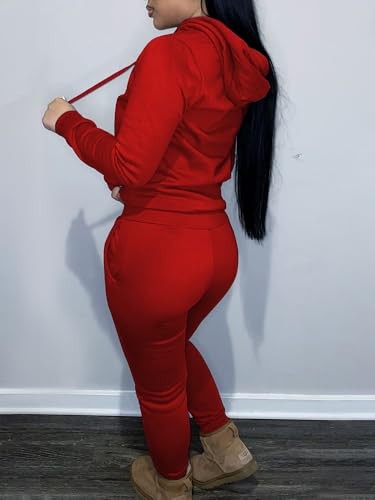 Two Piece Outfits for Women Casual Sweatsuits Set Long Sleeve Large 9014a-red