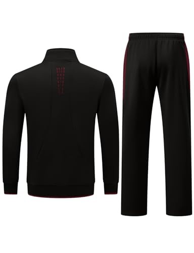 Men's Fleece Lined Tracksuits Sweatsuits 2 Piece Sets XX-Large Black/Wine