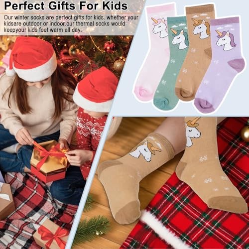 Kids Merino Wool Hiking Socks for Toddlers Boys Girls, 4 Pairs Warm Thick 1-3T