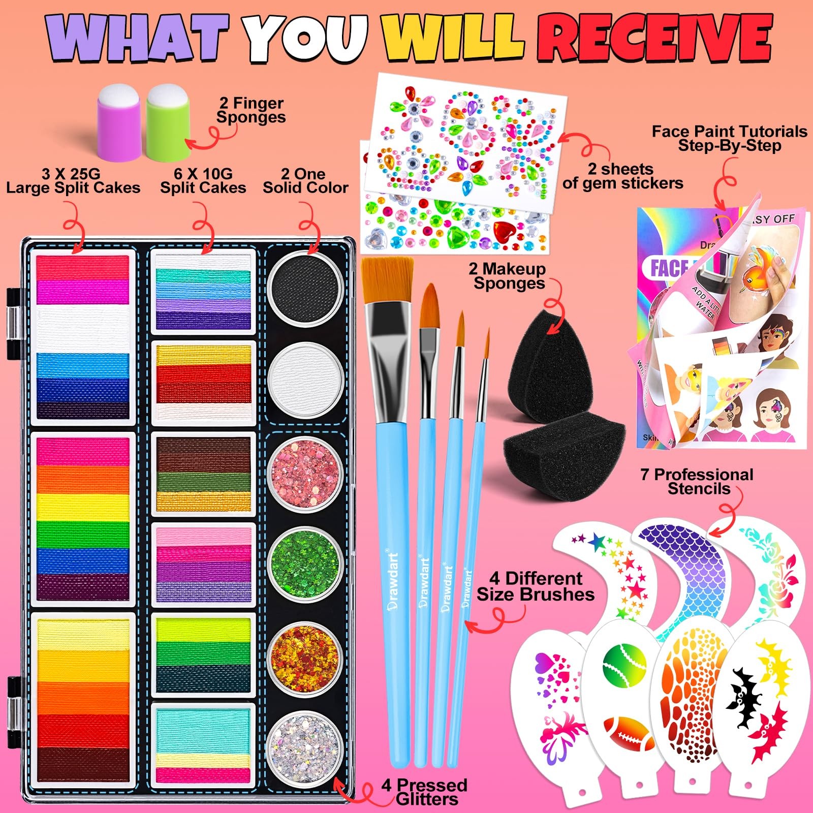 Professional Face Painting Kit for Kids Adults, Large Split Cake Face Paint P...