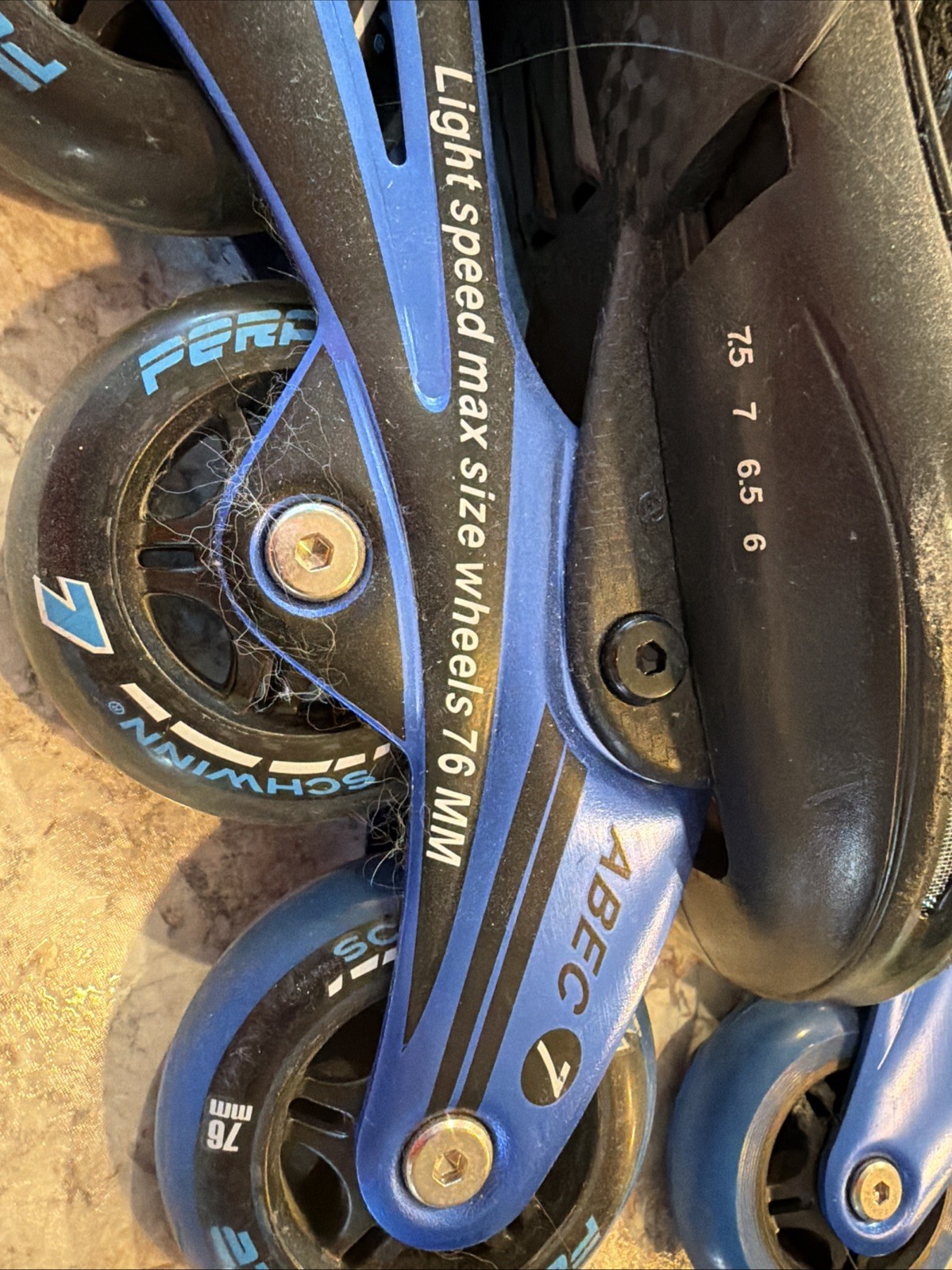 Schwinn ABEC 7 Roller Blades Size 6-7 Black Blue 76mm Wheels Adjustable