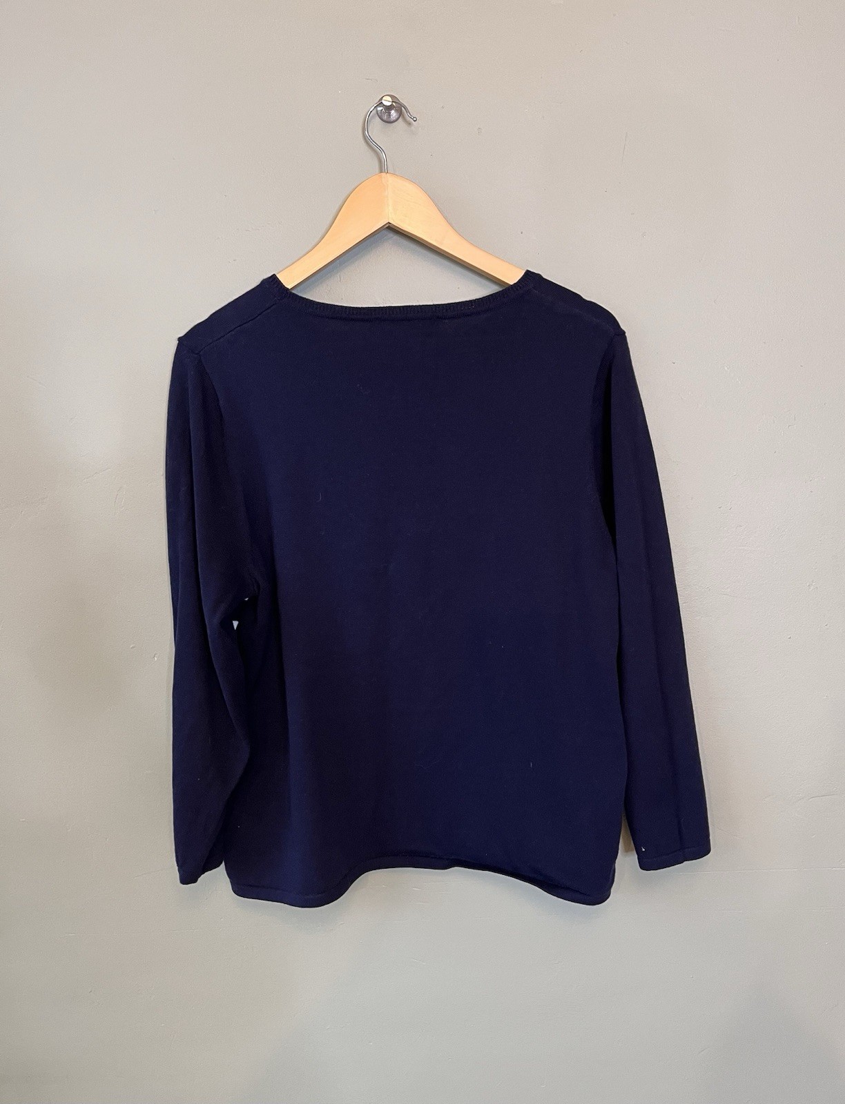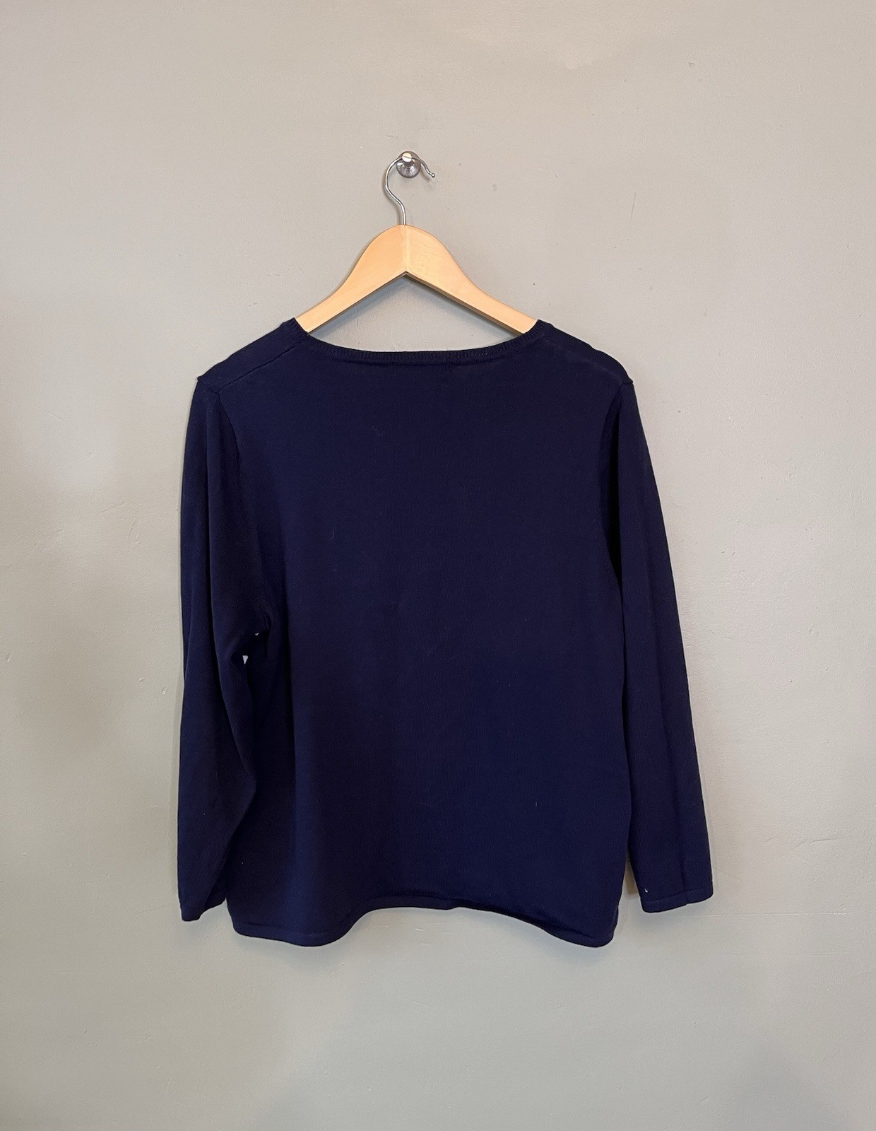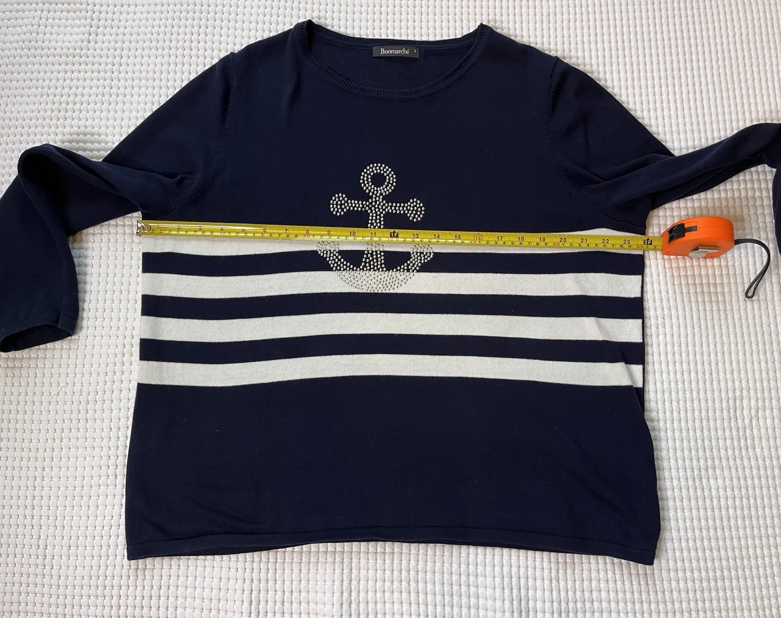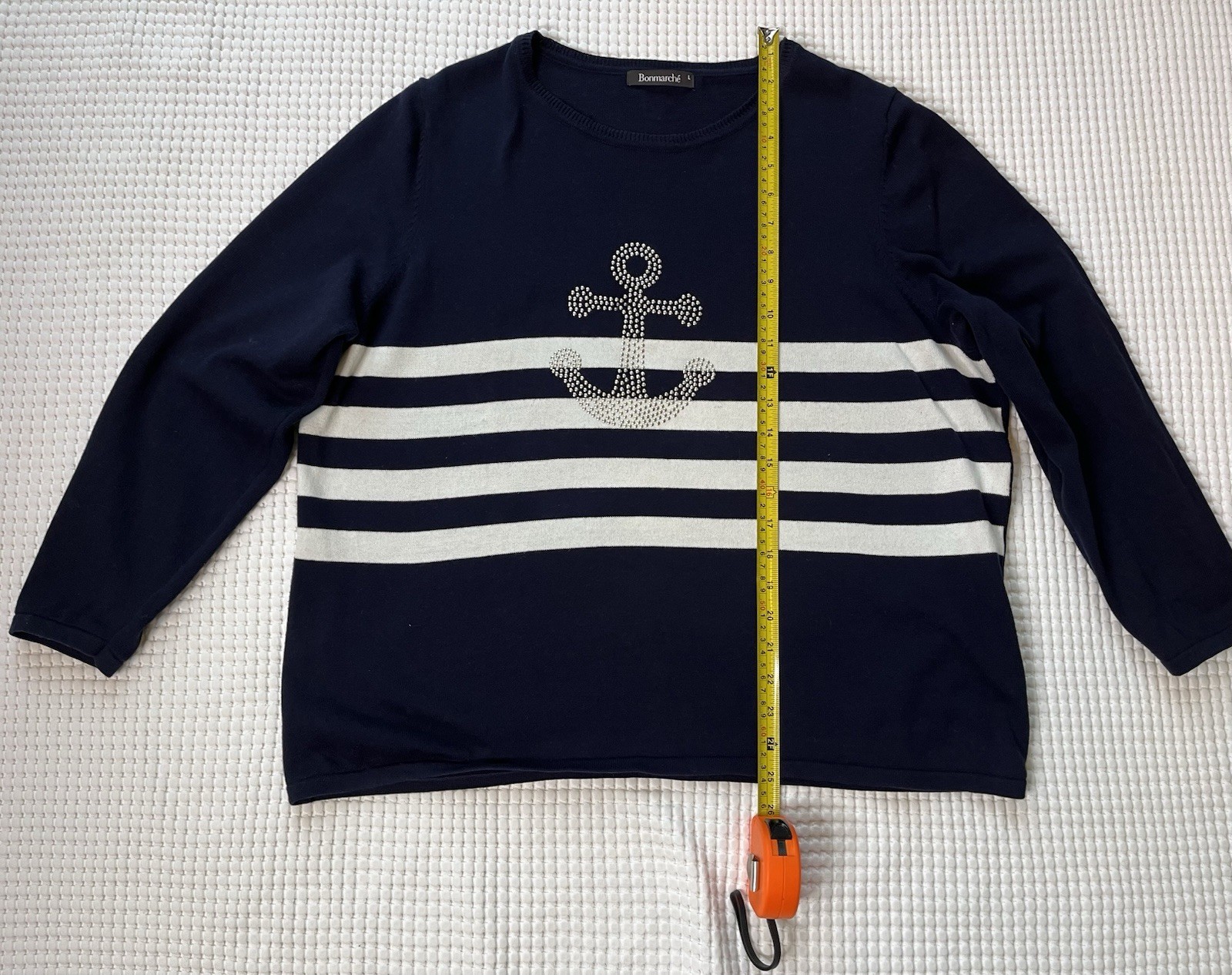 Bon March Ladies Jumper Sweater Size L UK 16-18 Navy Blue Nautical 100 Cotton