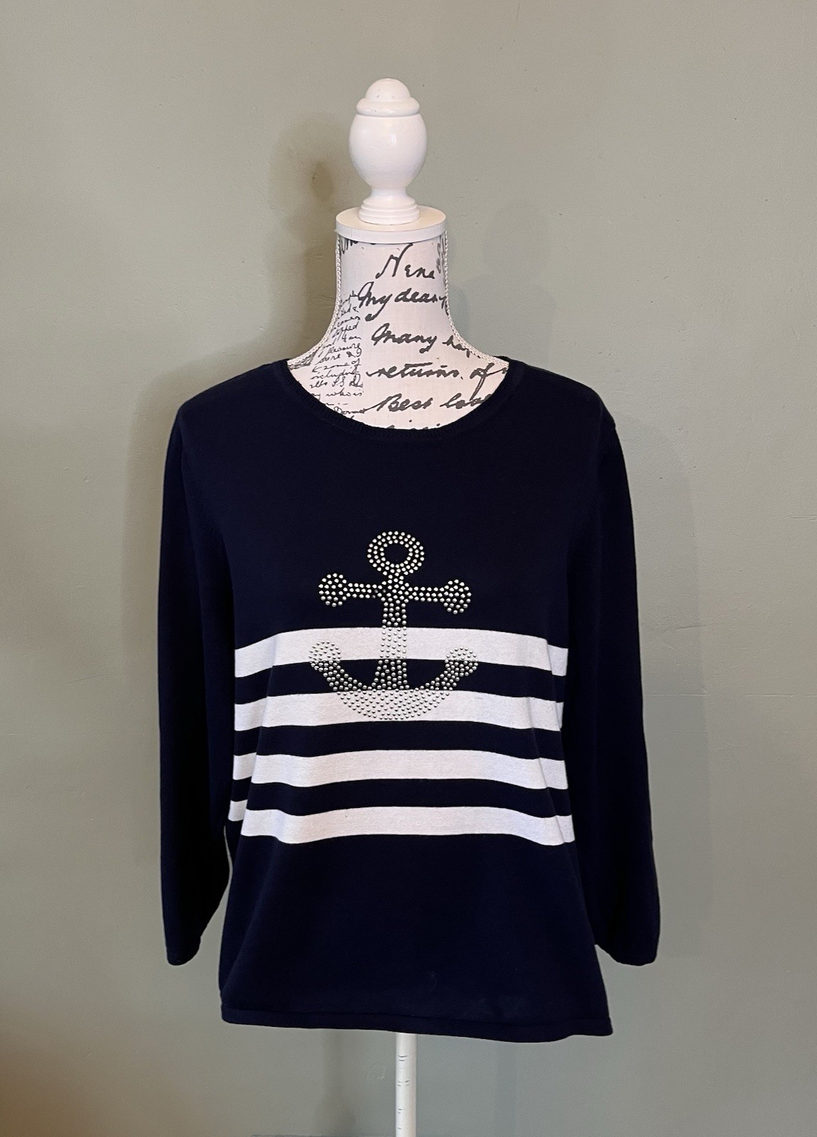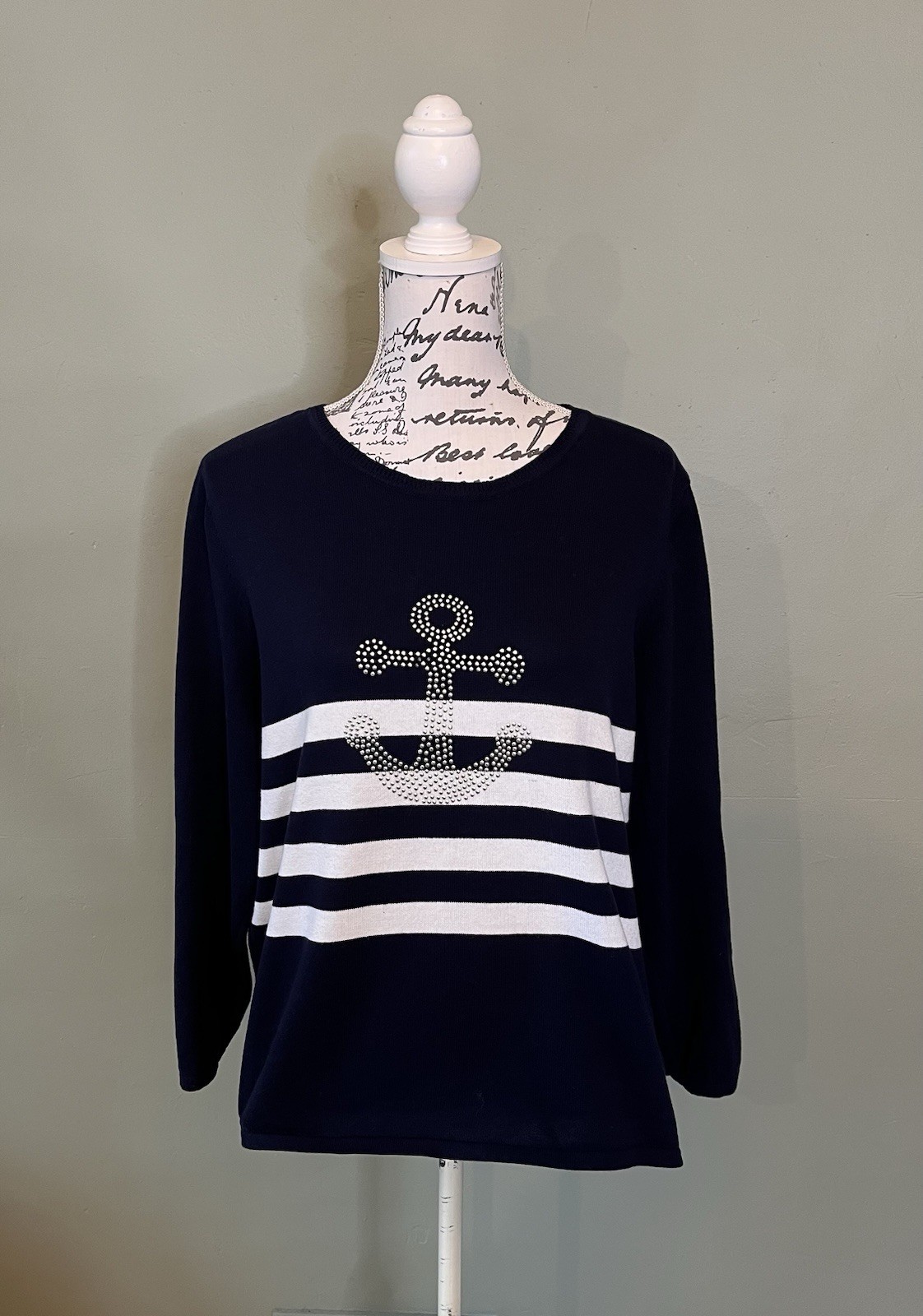 как выглядит Bon March Ladies Jumper Sweater Size L UK 16-18 Navy Blue Nautical 100 Cotton фото
