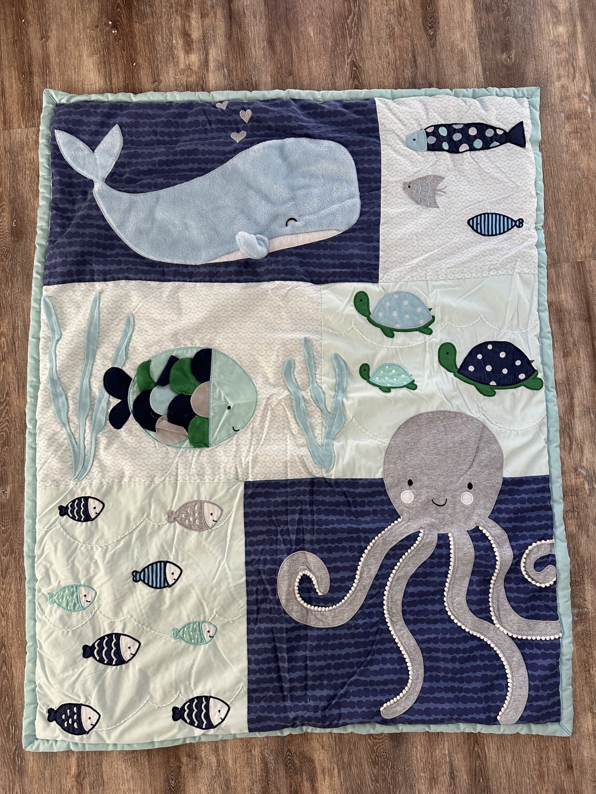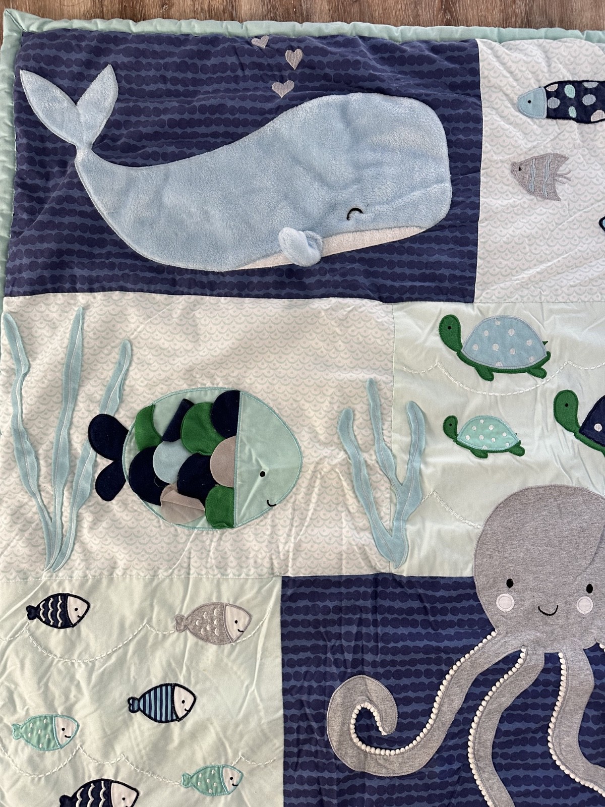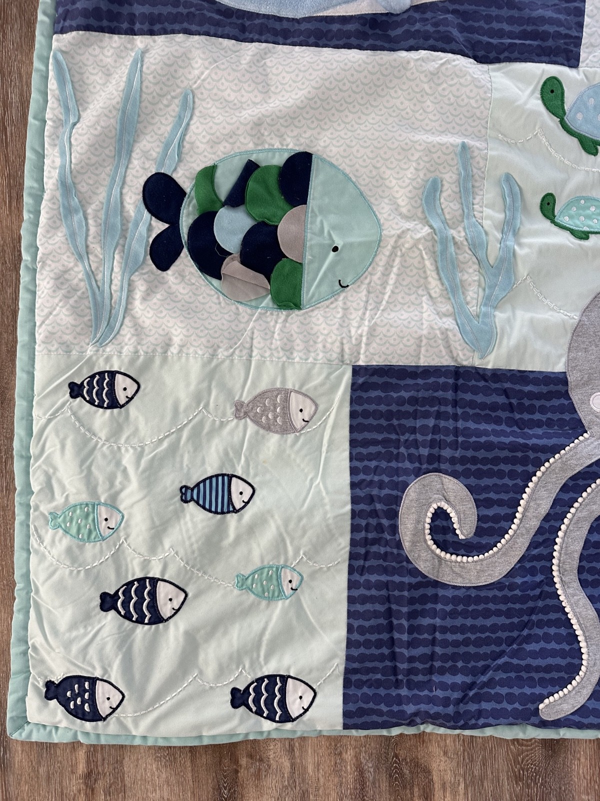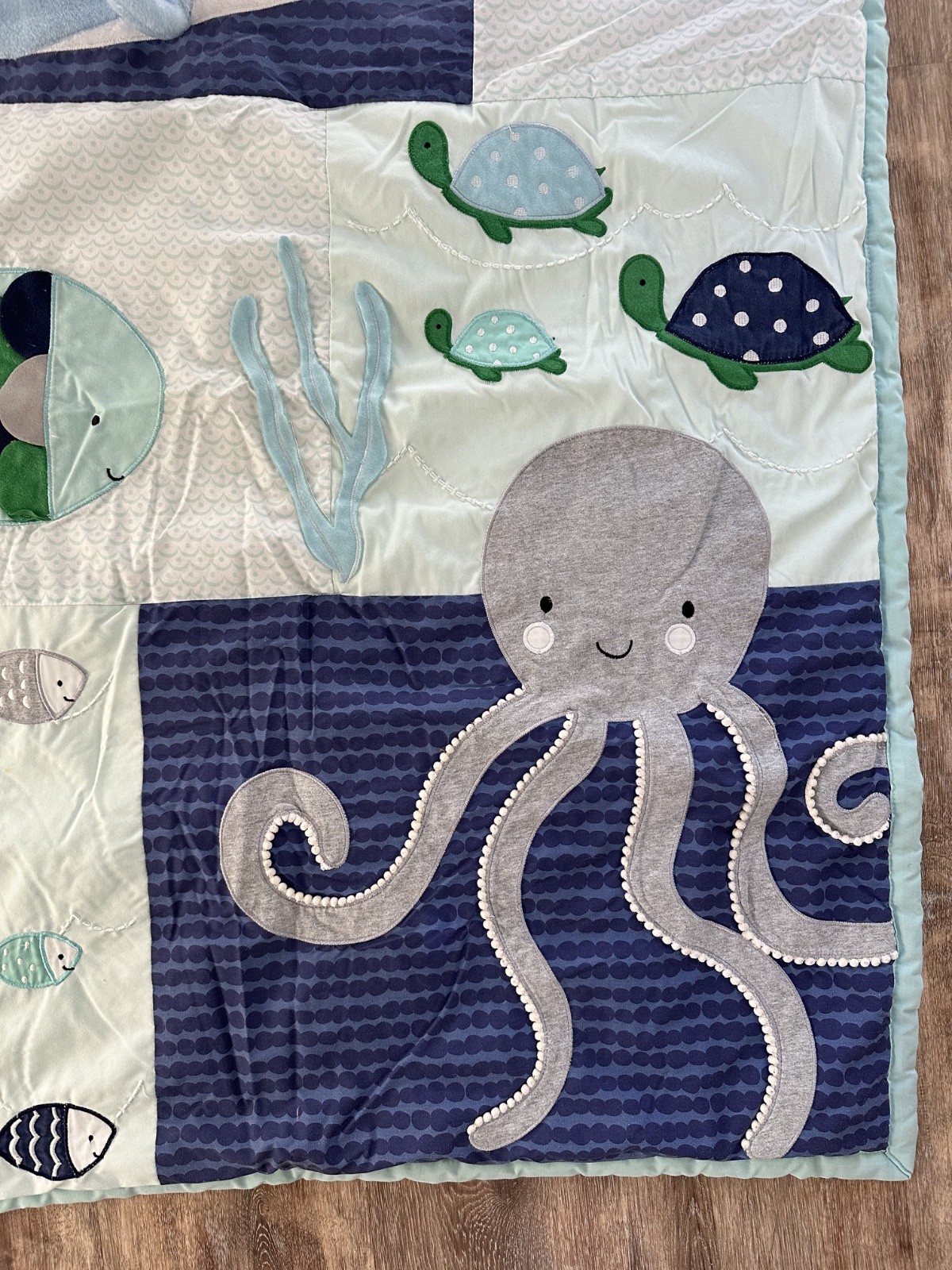Lambs Ivy Oceania Crib Quilt Baby Blanket Whale Octopus Fish Blue Gray