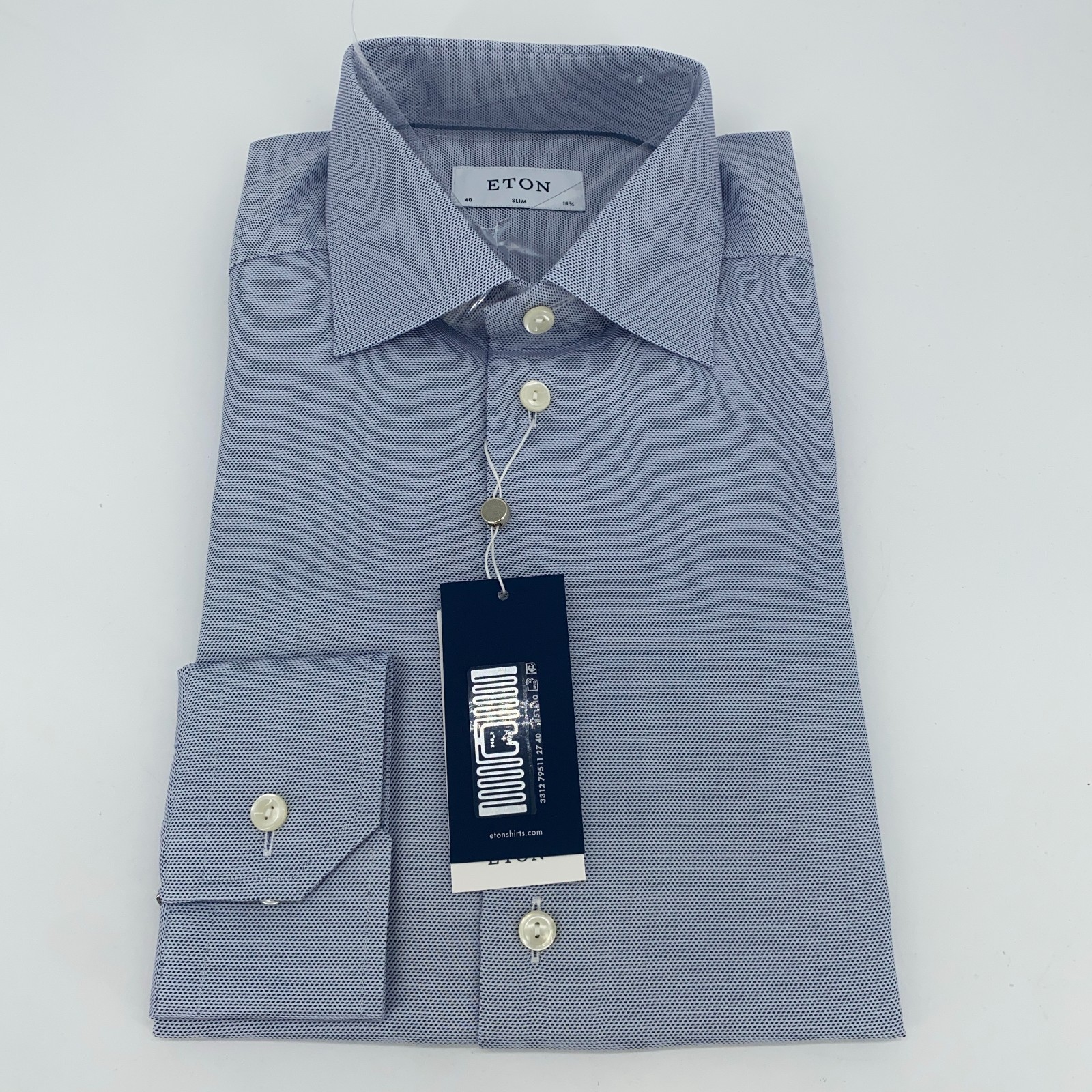 Eton Dress Shirt Men M 15 3/4 - 40 Blue Textured Twill Slim Fit Collar Button Up