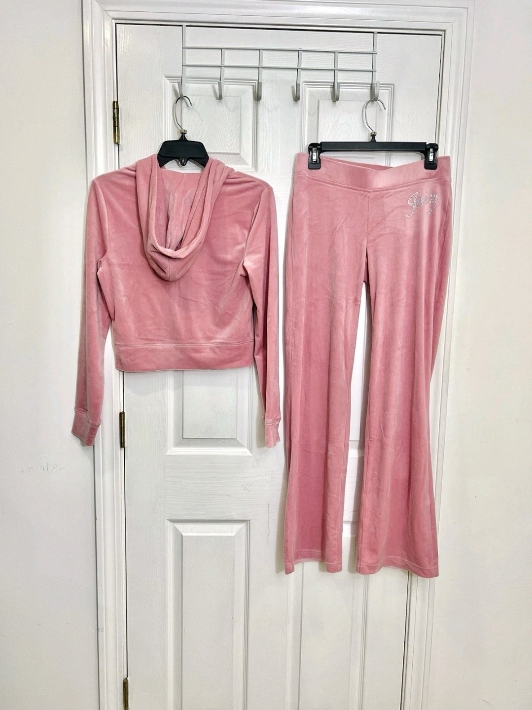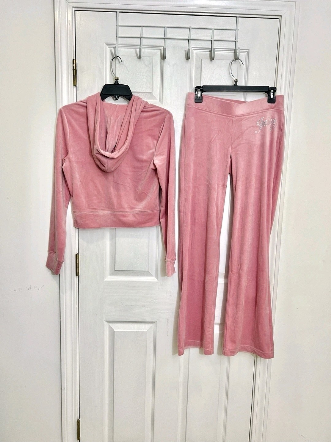 как выглядит Juicy Couture Size M Rose Bling Velour Tracksuit Hoodie Pants Rhinestone NWT фото