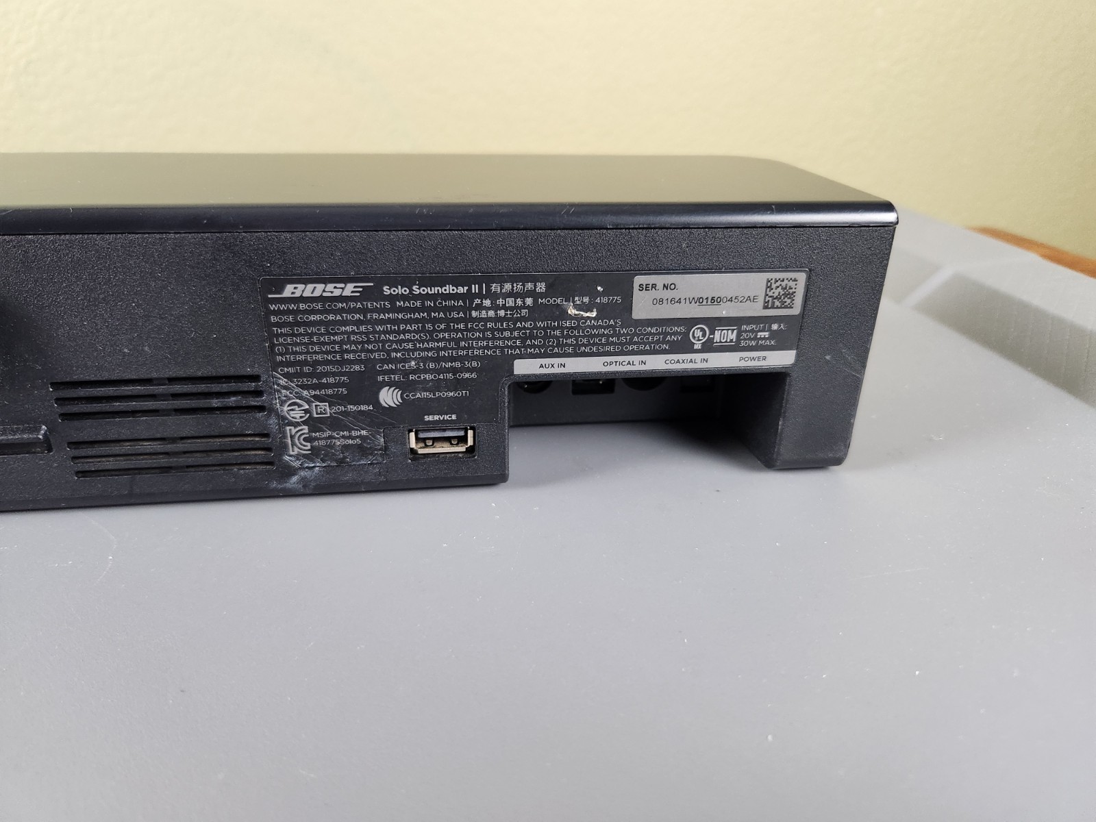 Bose Solo Soundbar II Digital Theatre 418775 No Remote Or Power Adapter