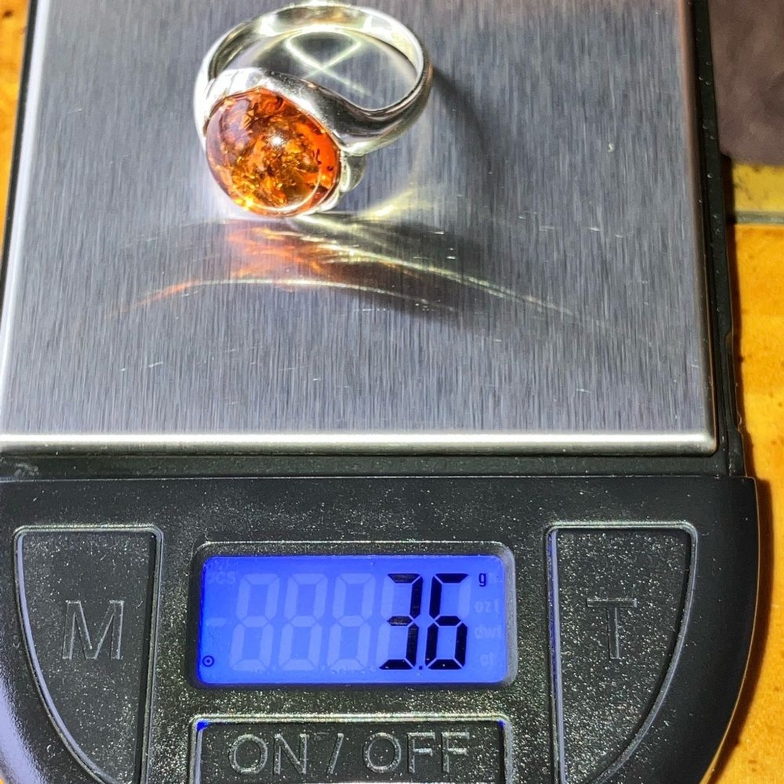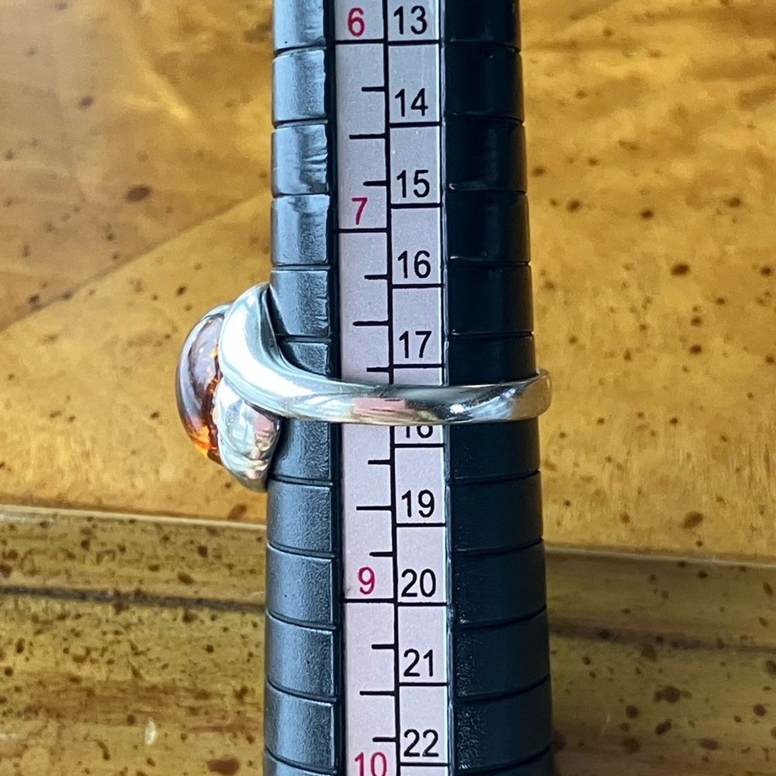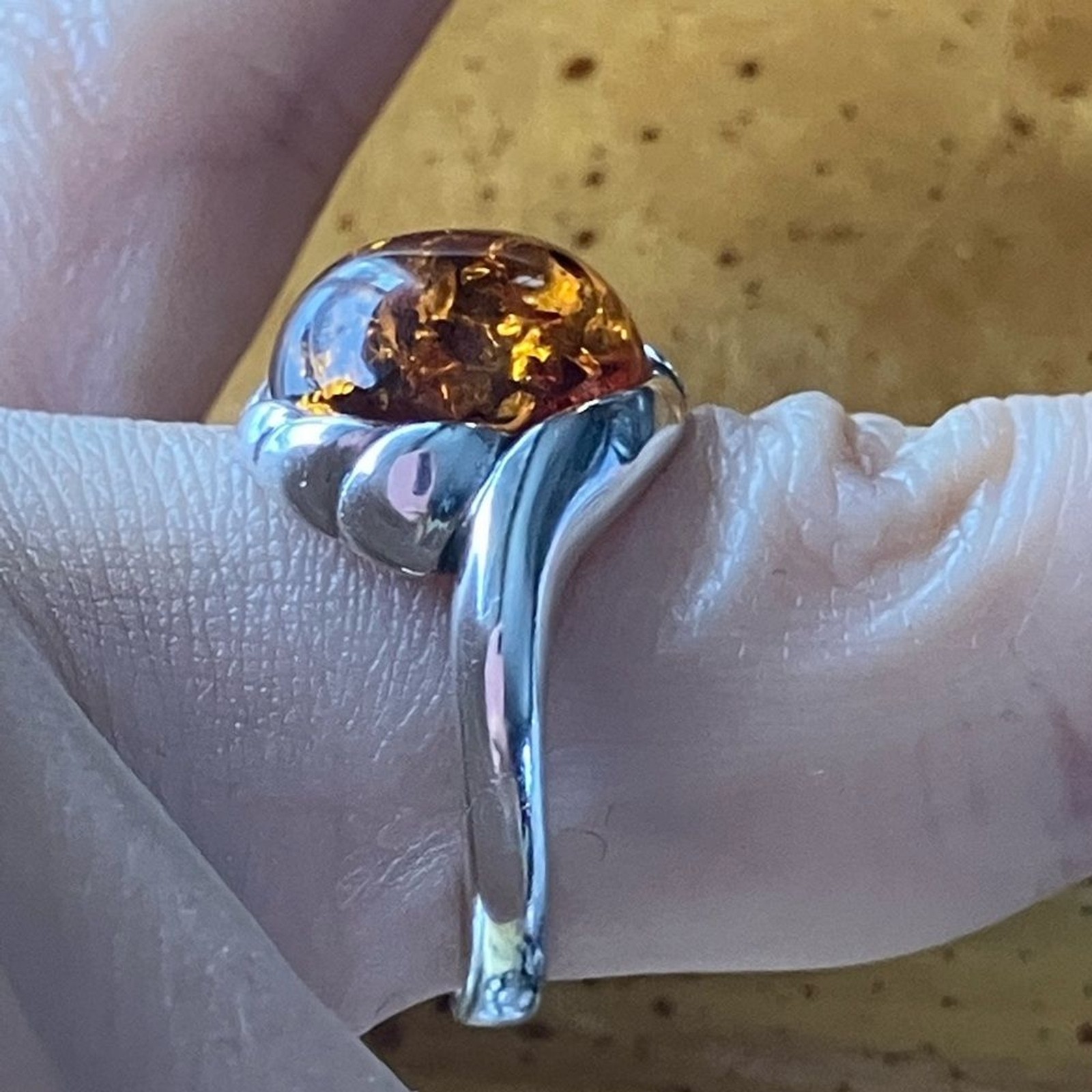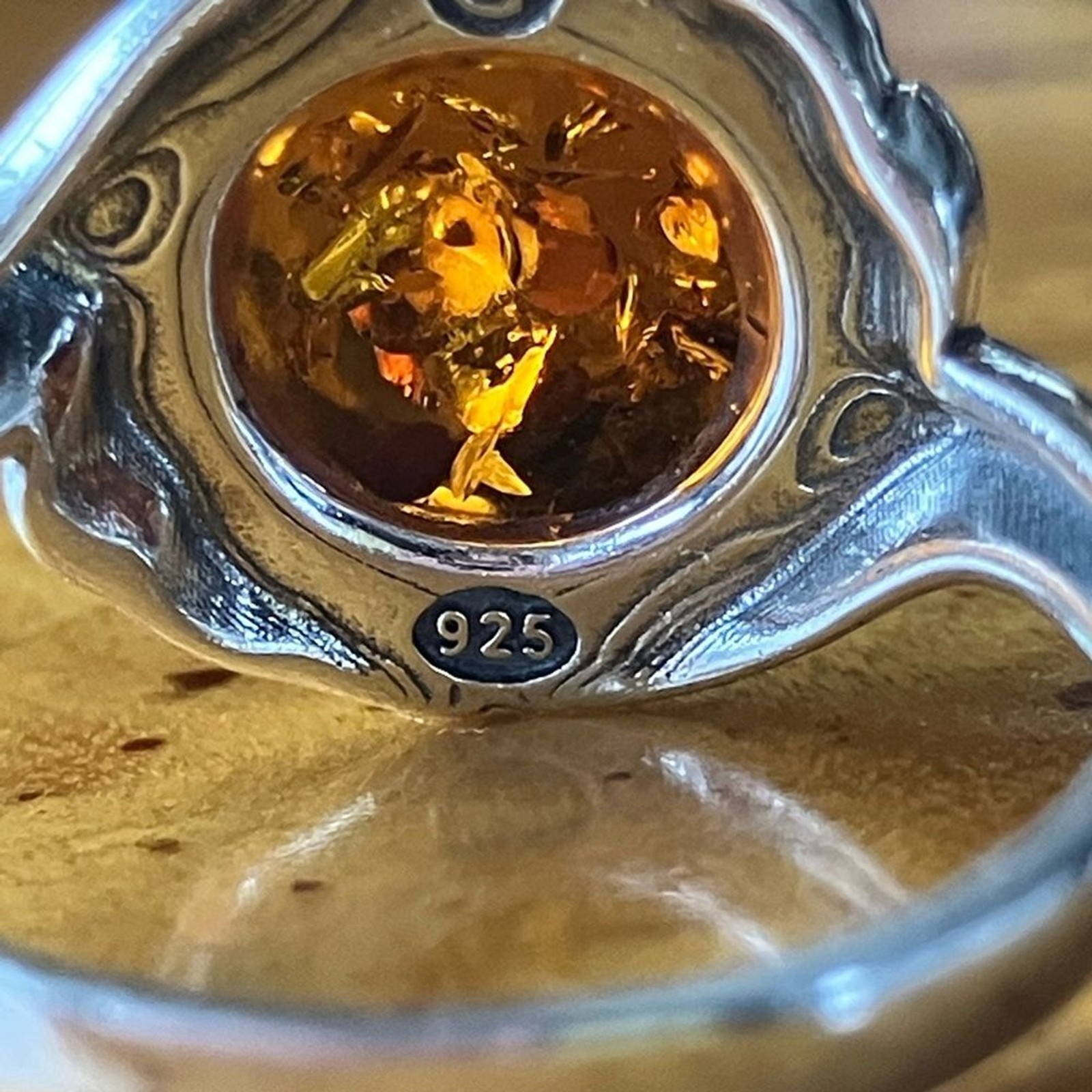 как выглядит Natural Amber Sterling Silver Ring Size 8 фото