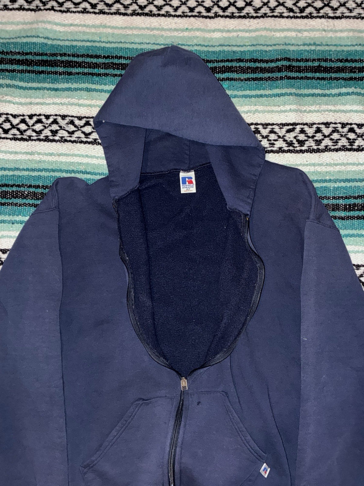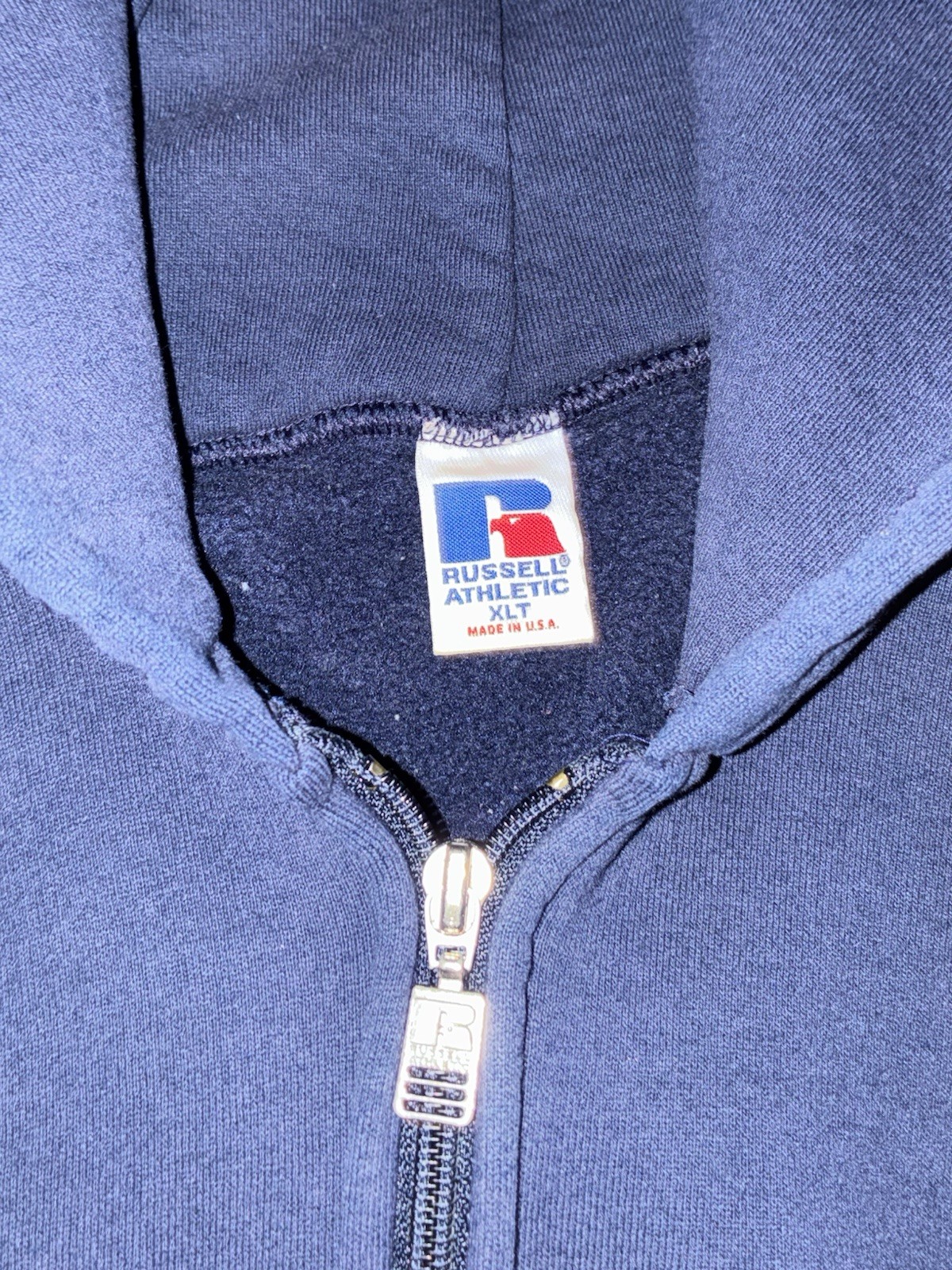как выглядит Vintage 90s Made in USA Navy Blue Russell Zip Up Hoodie, Size XL Pit фото
