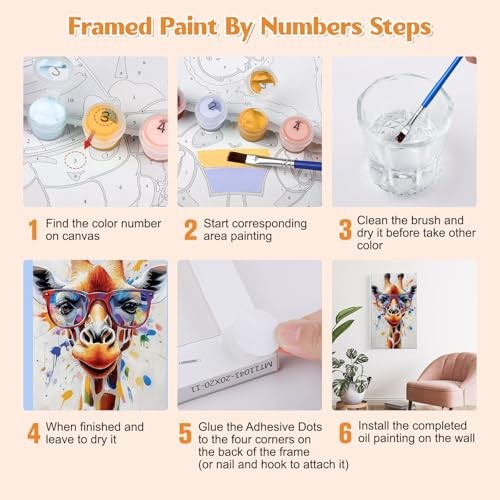 Giraffes Paint by Numbers Kit with Frame for Beginners DIY Canvas Wall Art Set