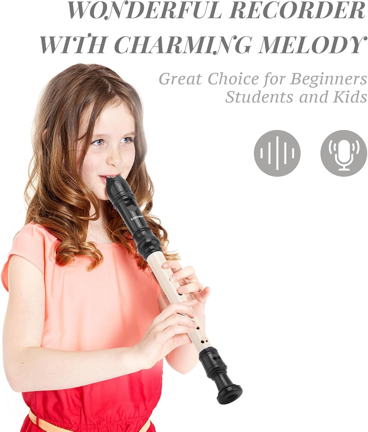 EASTTOP Soprano Recorder - 8 Hole German Fingering for Beginners, Black Ivory