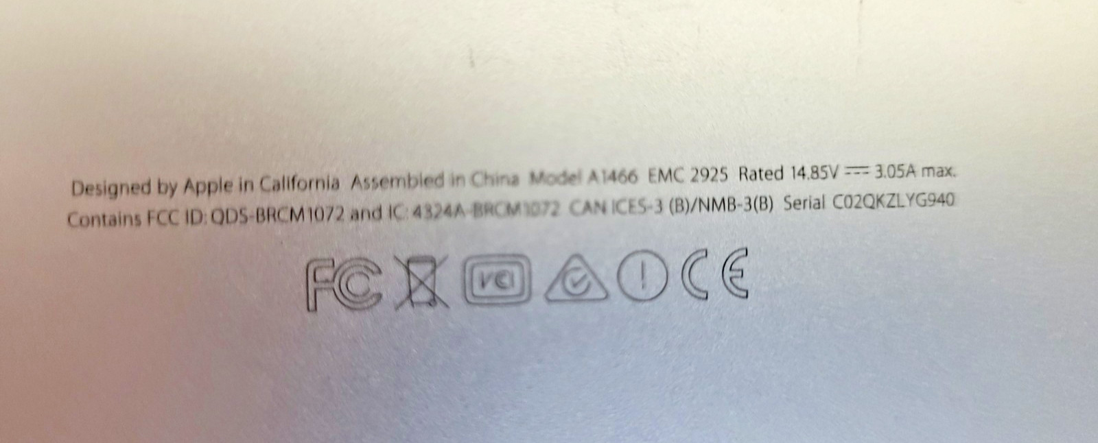 как выглядит APPLE MacBook AIR LAPTOP Air 13-inch A1466 EMC 2925 Silver FOR PARTS ONLY фото