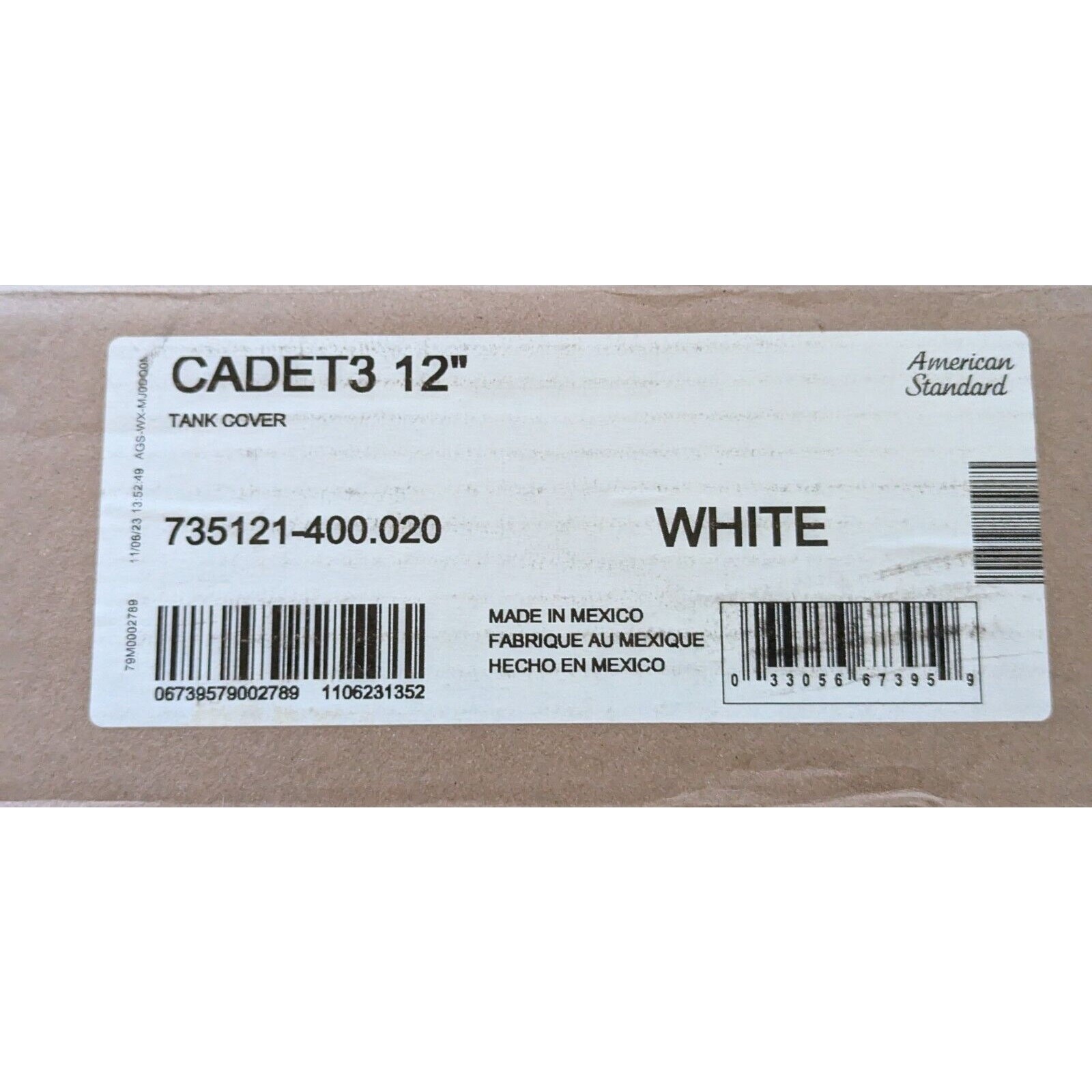 American Standard Toilet Tank Cover Lid 735121-400.020 Cadet 3 White