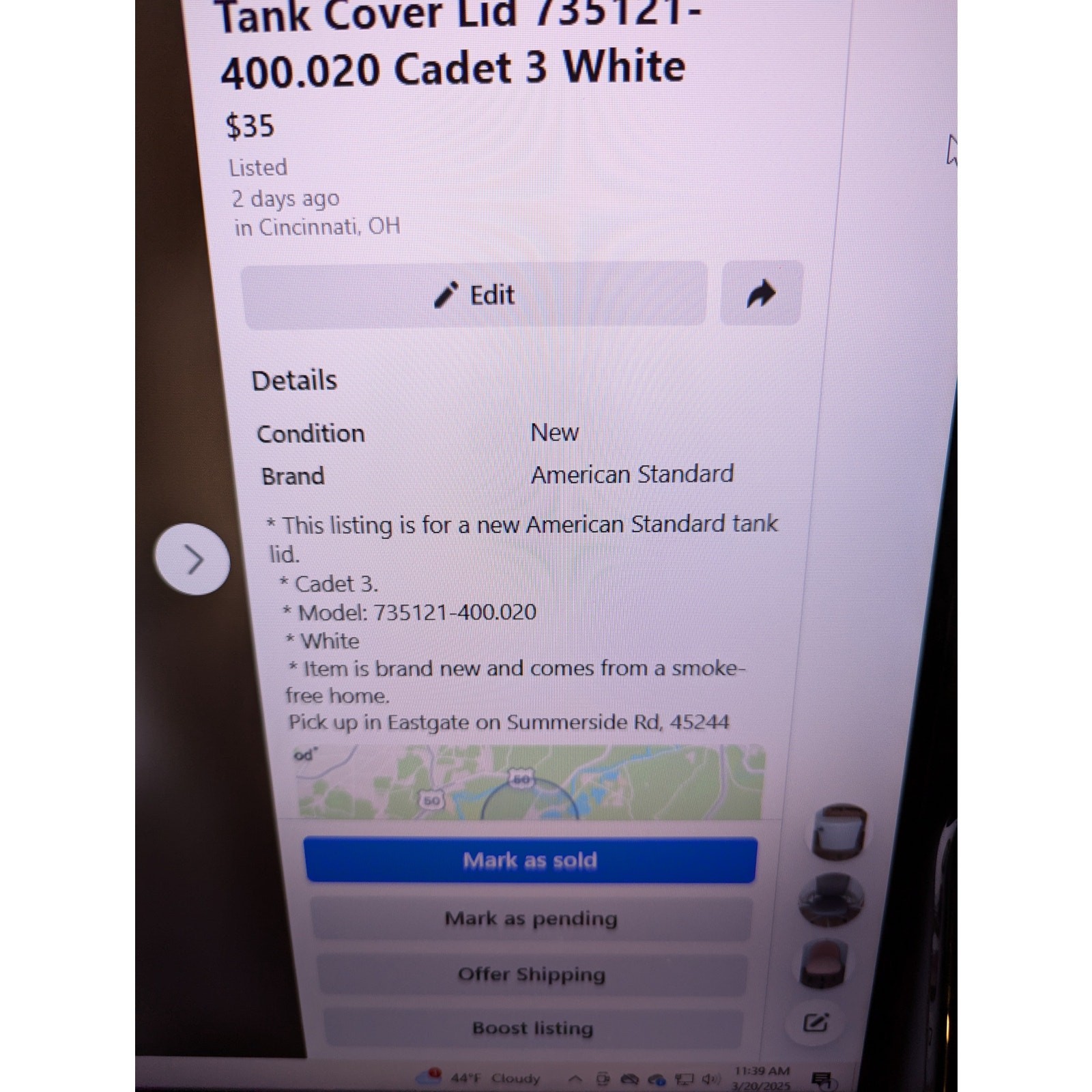 как выглядит American Standard Toilet Tank Cover Lid 735121-400.020 Cadet 3 White фото