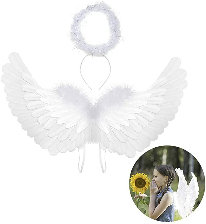 Angel Feather Wings w/Halo Ring Wand Costume Props Adult/Teen/Kids Valentine's