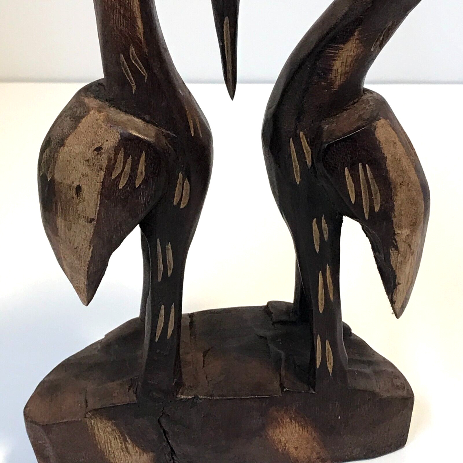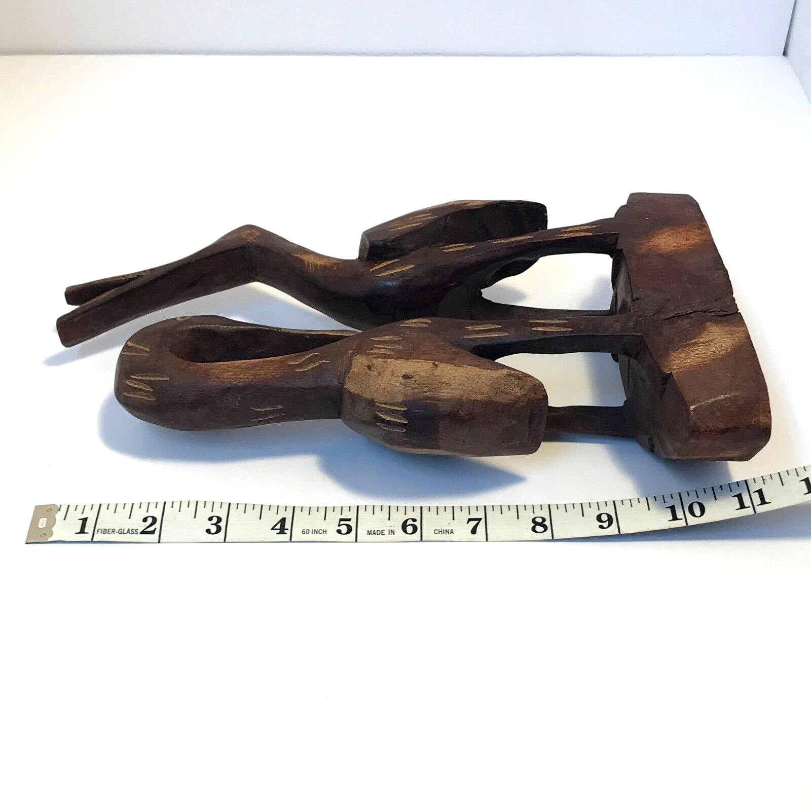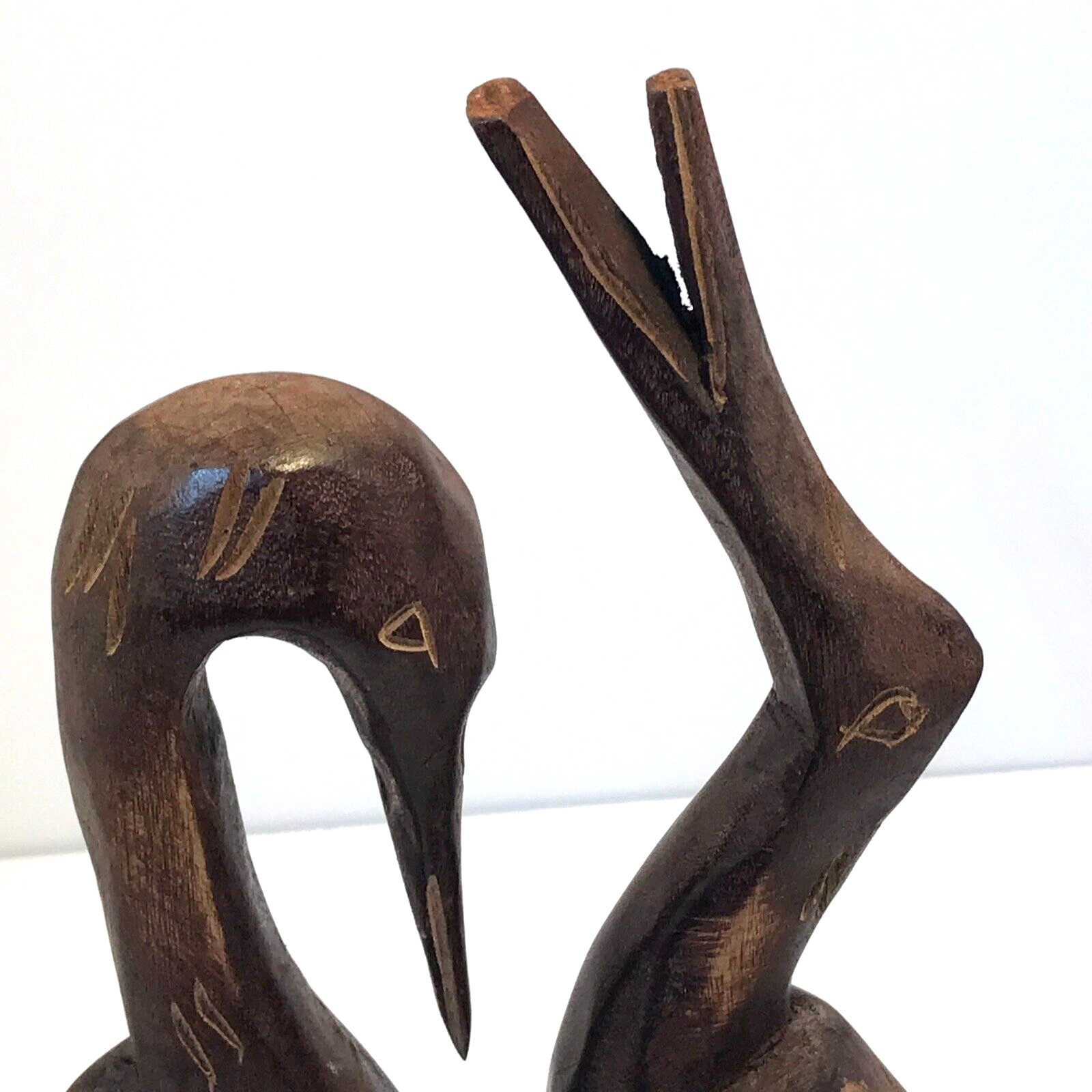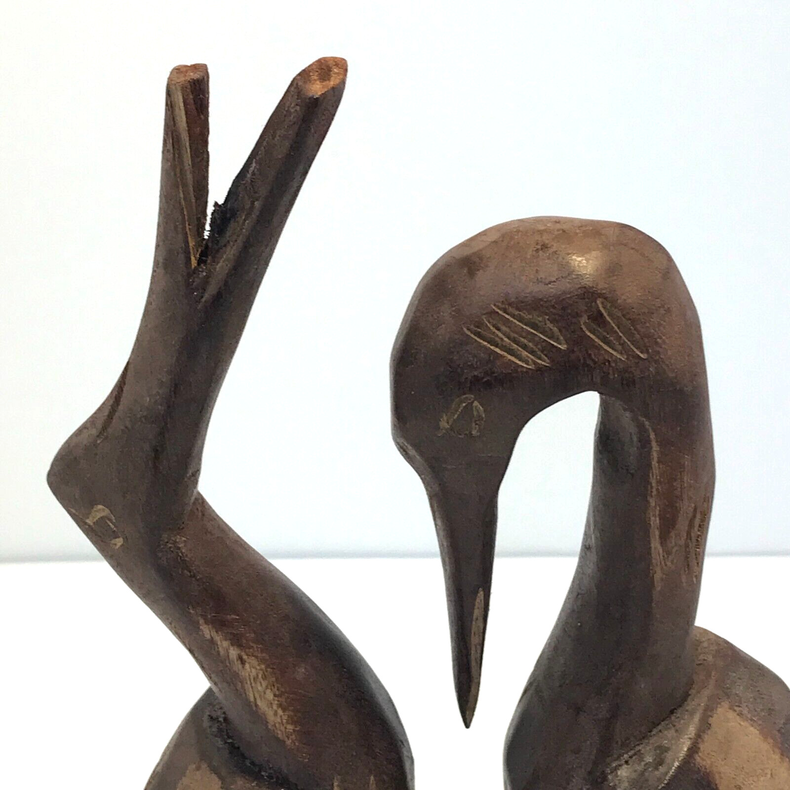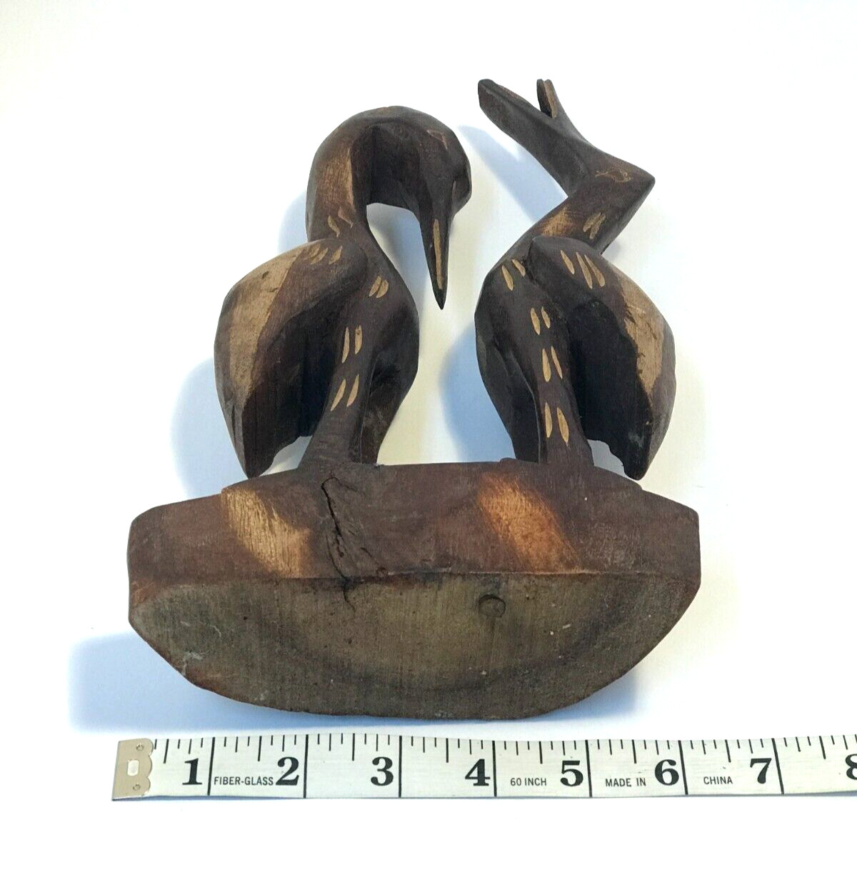 Vintage Two Birds Folk Country Hand Carved Wooden Birds Abstract Art Sculpture