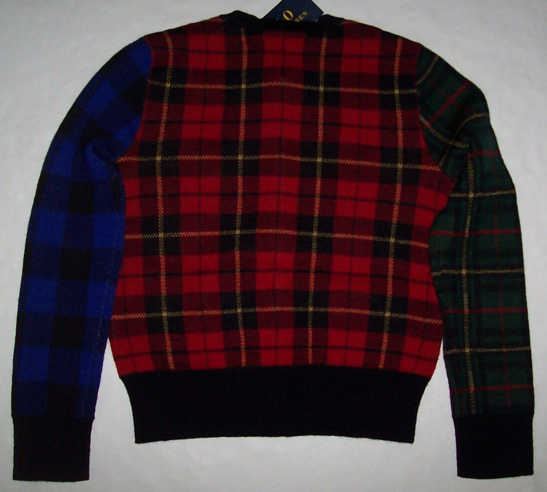 как выглядит NWT Polo Ralph Lauren 175 Black MULTI-PLAID Wool Cardigan Sweater Girls L 12/14 фото