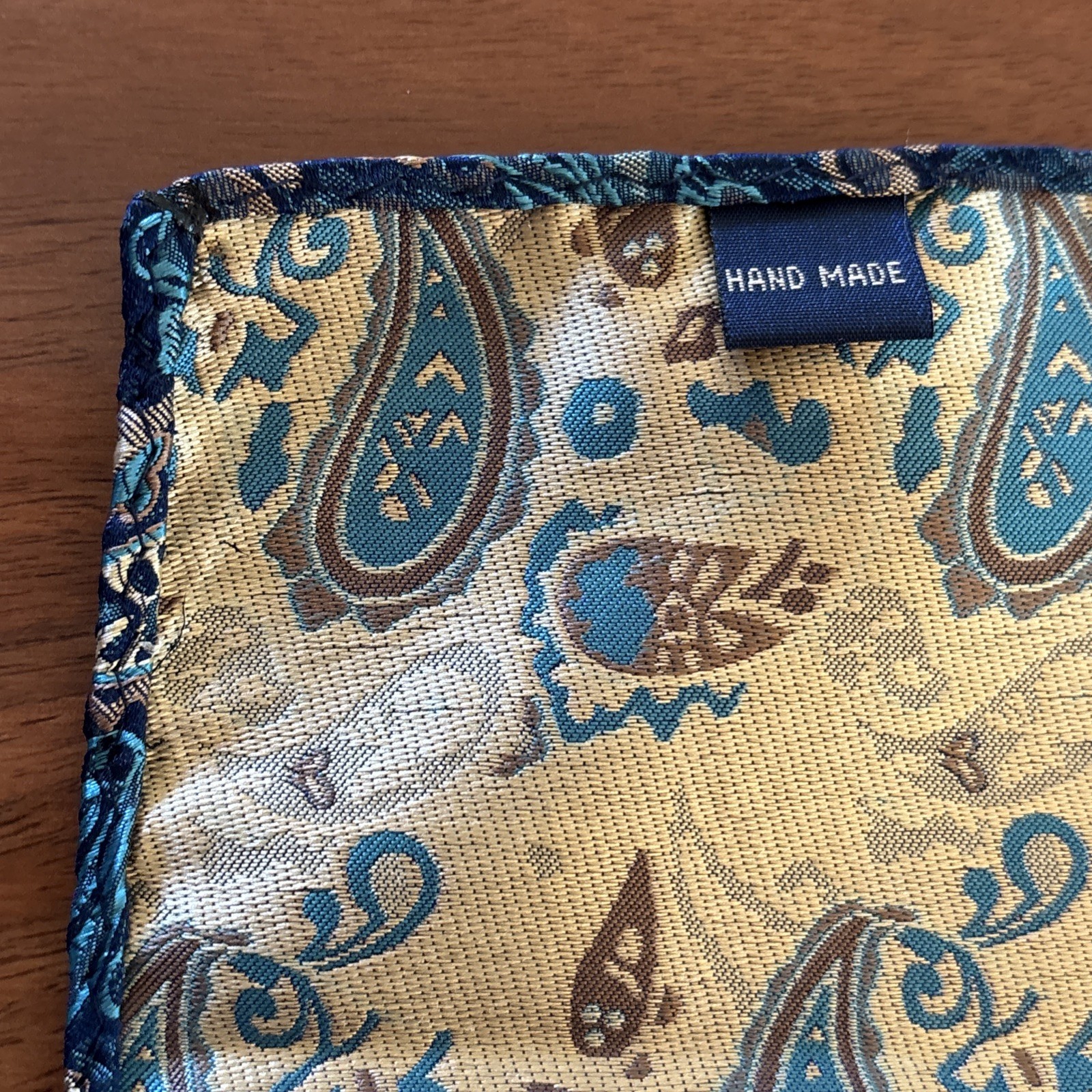 Lot Of 2 Pocket Square Handkerchief Hanky Silk Blue Yellow Hand Made Rolled 12