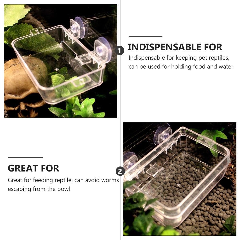 2pcs Reptile Water Dish Transparent Basin Lizard Feeder Anti-Escape Feeding Bowl