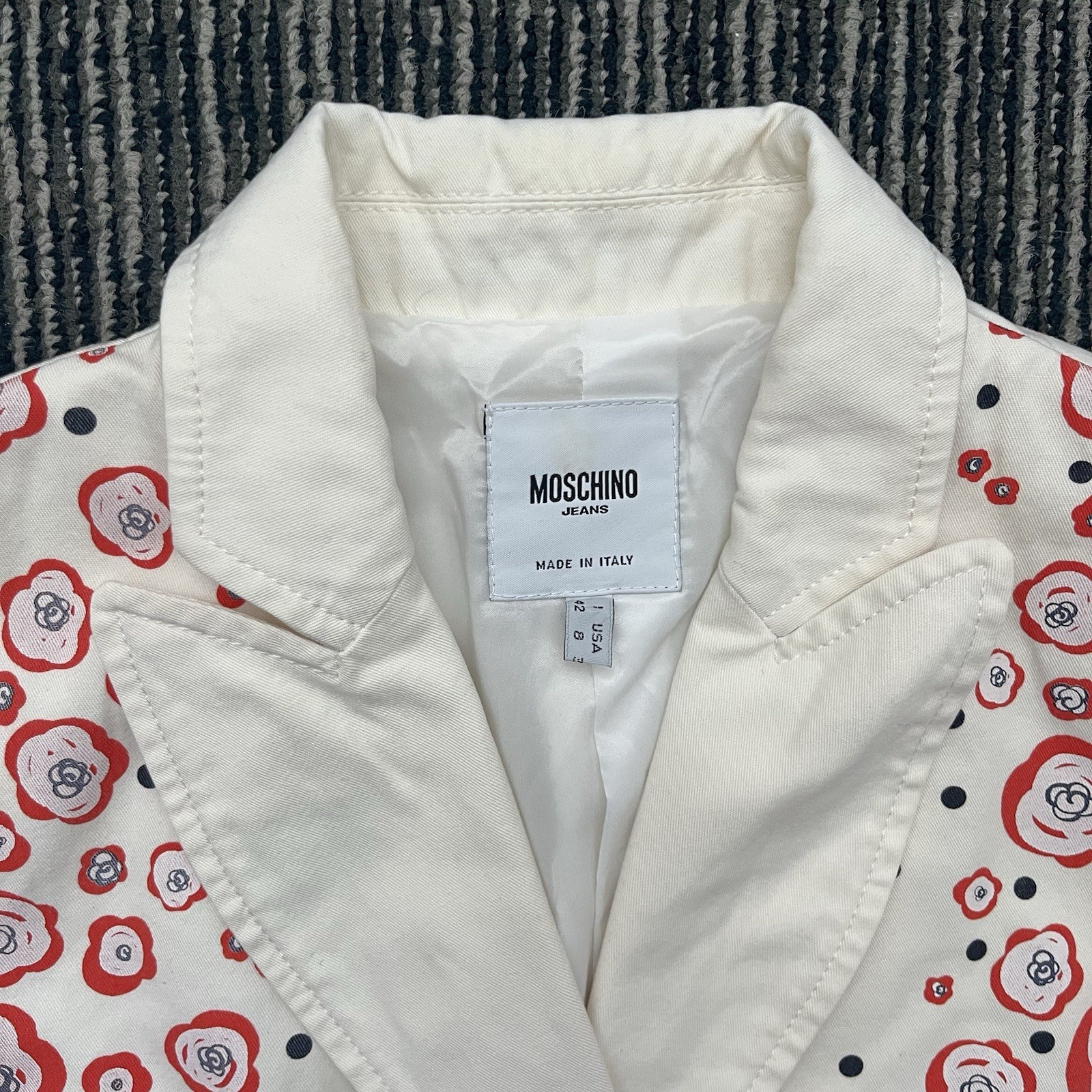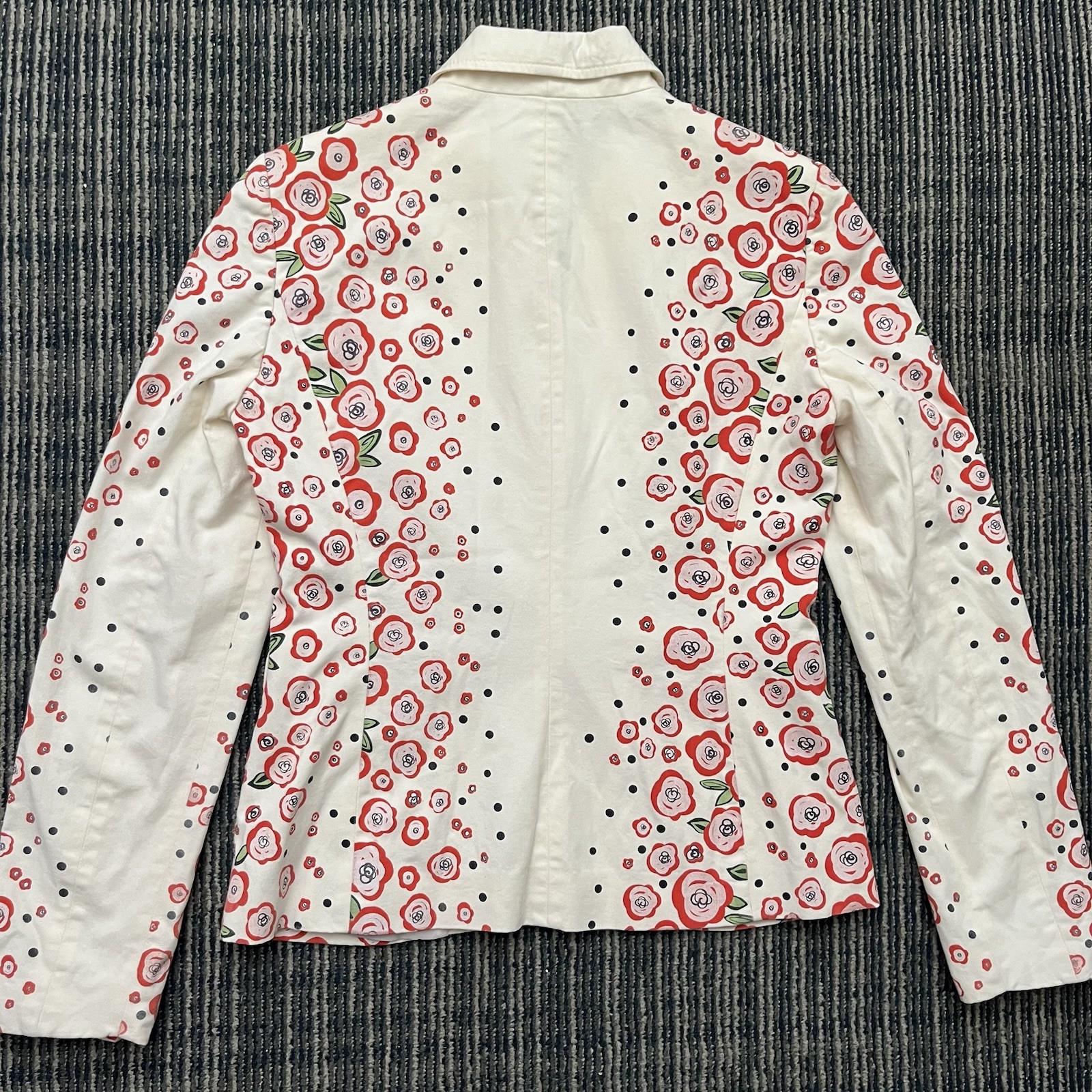 Moschino Jeans Vintage Floral Blazer Jacket Italy Cream Red Rose Women s Usa 8
